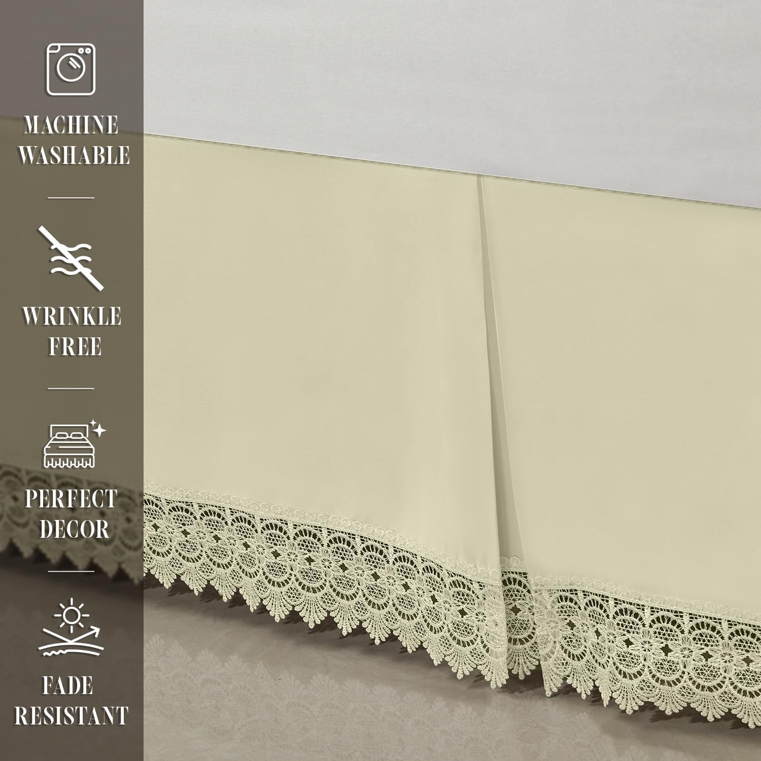 VINTAGE STYLE- Pamper your self with a ravishing Elegant Consolation Lace Mattress Skirt. Our timeless mud ruffle will convey a contact of magnificence to your inside design.