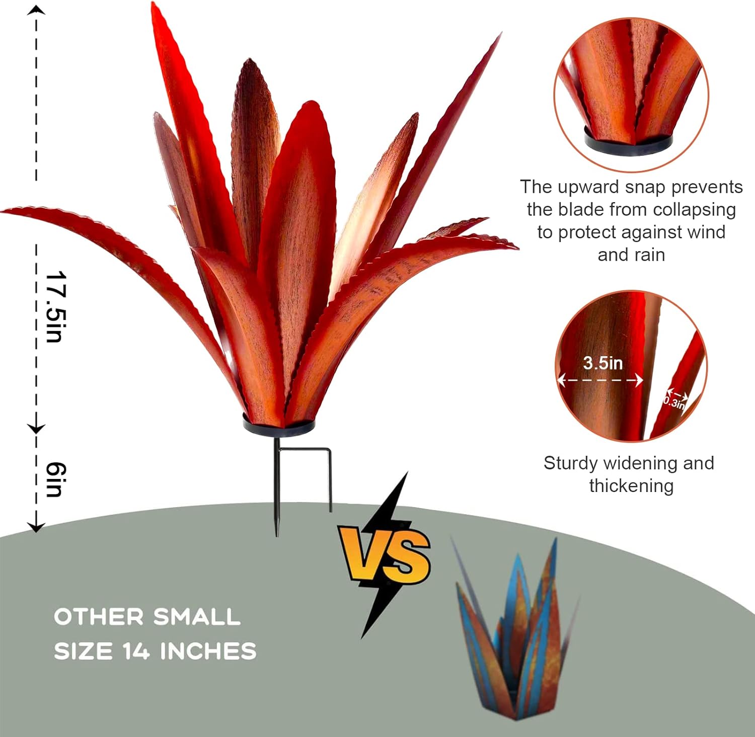 [Simple assembly]Easy to assemble rust Metal Tequila Agave Plant features rustic yard decor, just place it wherever you want, perfect for decorating gardens, courtyards, ponds, terraces and lawns. It can be placed on the ground, on the terrace, as a decorative pot – outdoor and indoor.