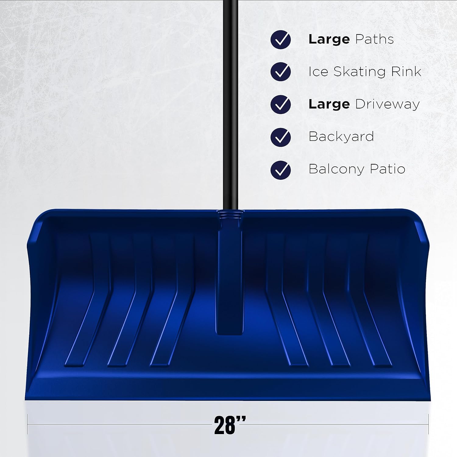 Additional-large 28-inch no-break polypropylene blade with deep ribs for heavy-duty snow pushing