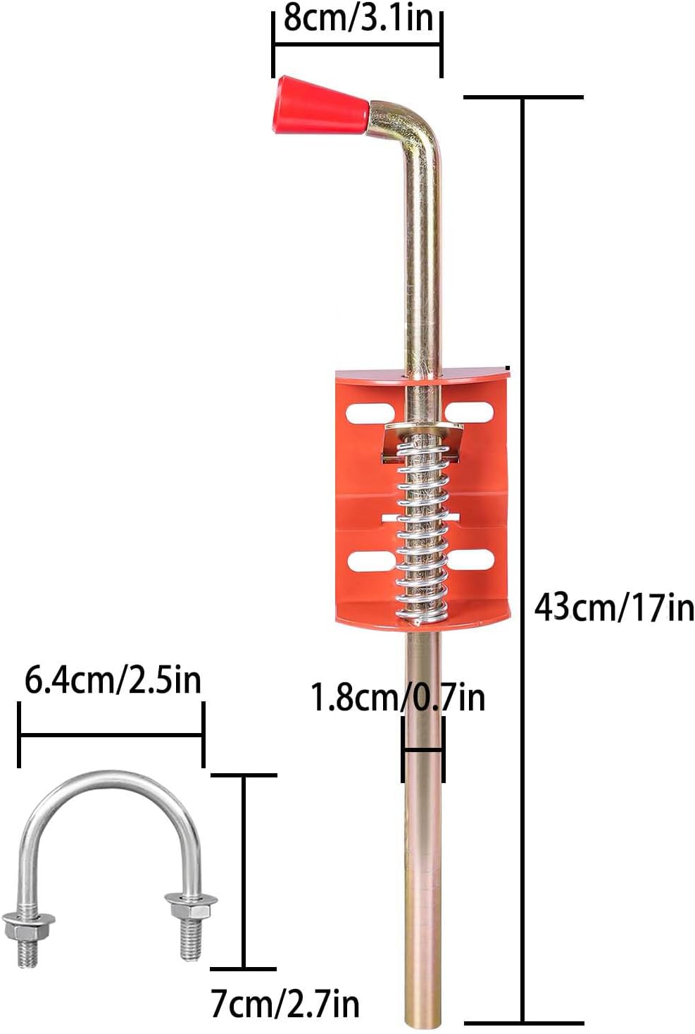 [Package Contents]: Cane bolt tube gate cease package deal consists of 2 U-shaped attachments, 1 crimson base, 1 hooked up spring, 2 screws; Drop pin rod measures 17 inches (46cm) lengthy, 3.75 inches (10cm) in diameter