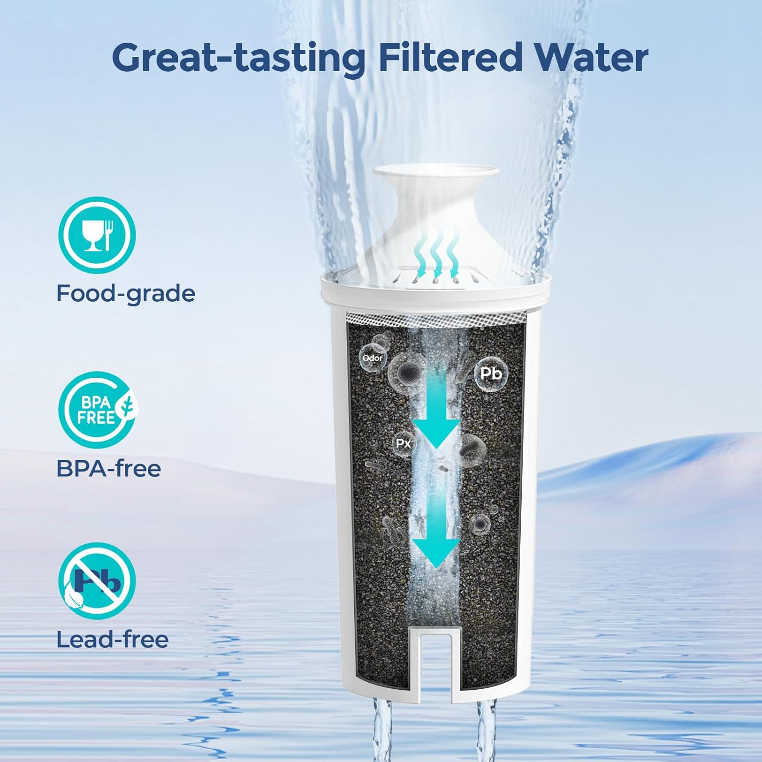 Straightforward to Exchange: No instruments required! Merely take away the used filter and insert the brand new one into the reservoir by lining up the groove within the filter with the ridge within the reservoir. Press firmly for a good seal. Take pleasure in a hassle-free substitute course of that saves you effort and time