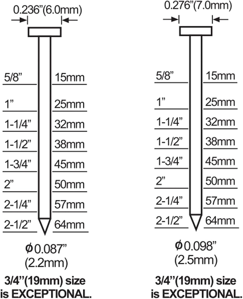 Suitable Nails: 14 gauge glue collated concrete T-nails from 5/8″ – 2-1/2″