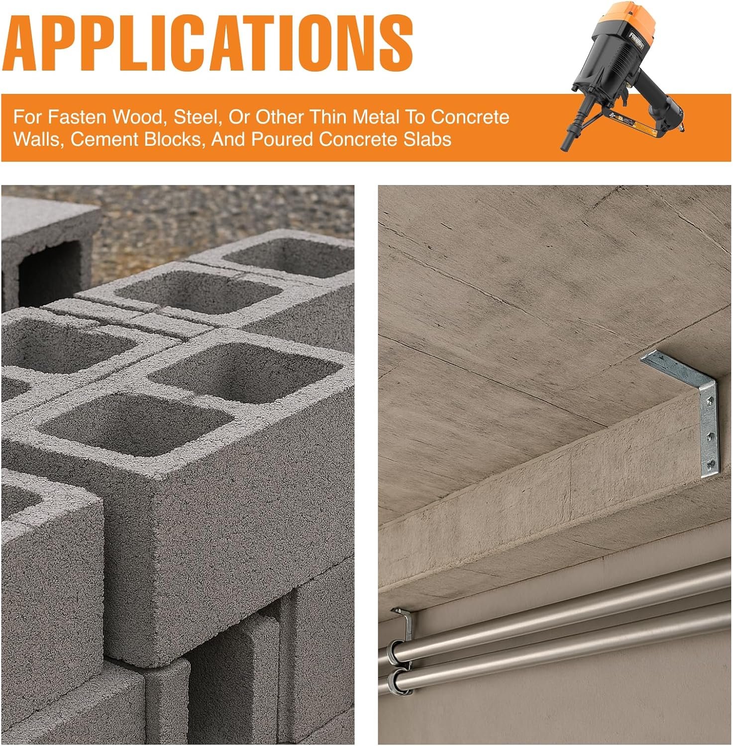 Building Functions: Fasten wooden, metal, or different skinny steel to concrete partitions, cement blocks, and poured concrete slabs quick and simple. Designed for heavy responsibility jobs equivalent to basement renovations, storage updates, framing, plywood to concrete nailing, wire lathe set up, metal banding, decking, fencing, and subfloors.