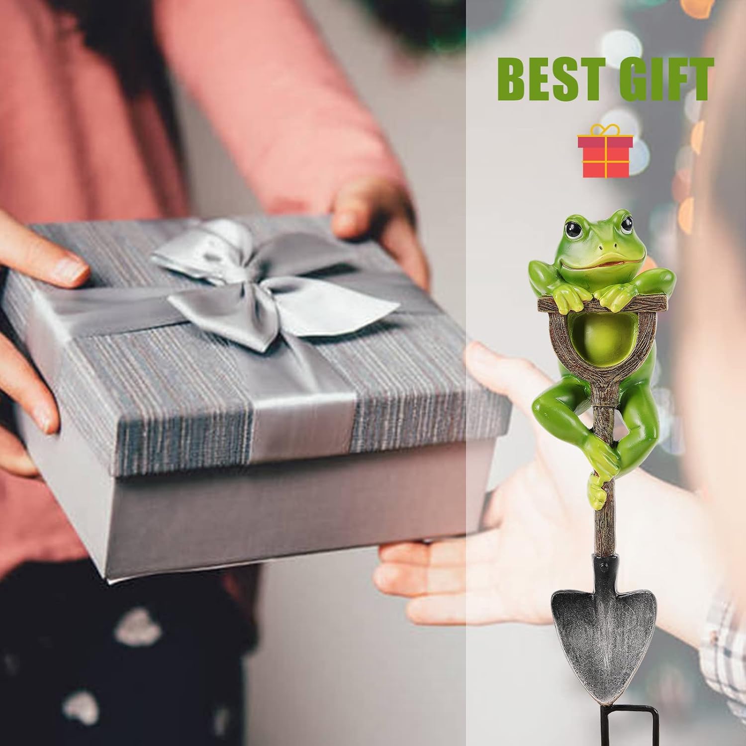 【Good Measurement】Frog decor is part of Shovel Collection. The dimensions is 3.3*2.2*12.6 inch, which makes the frog statue look cute.