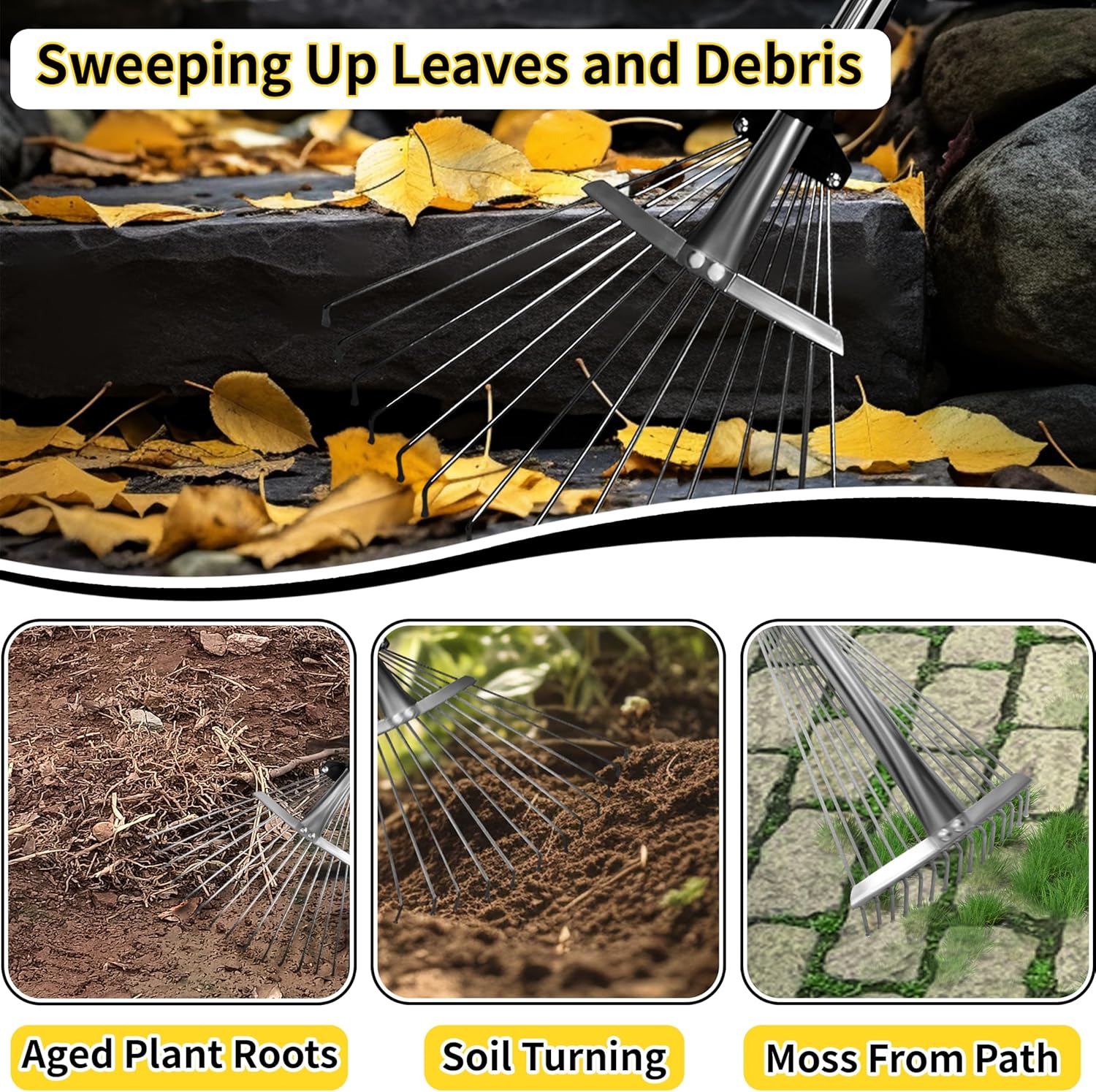 This rake isn’t only for leaves—it’s a multi-functional powerhouse for year-round yard care. Use it to: