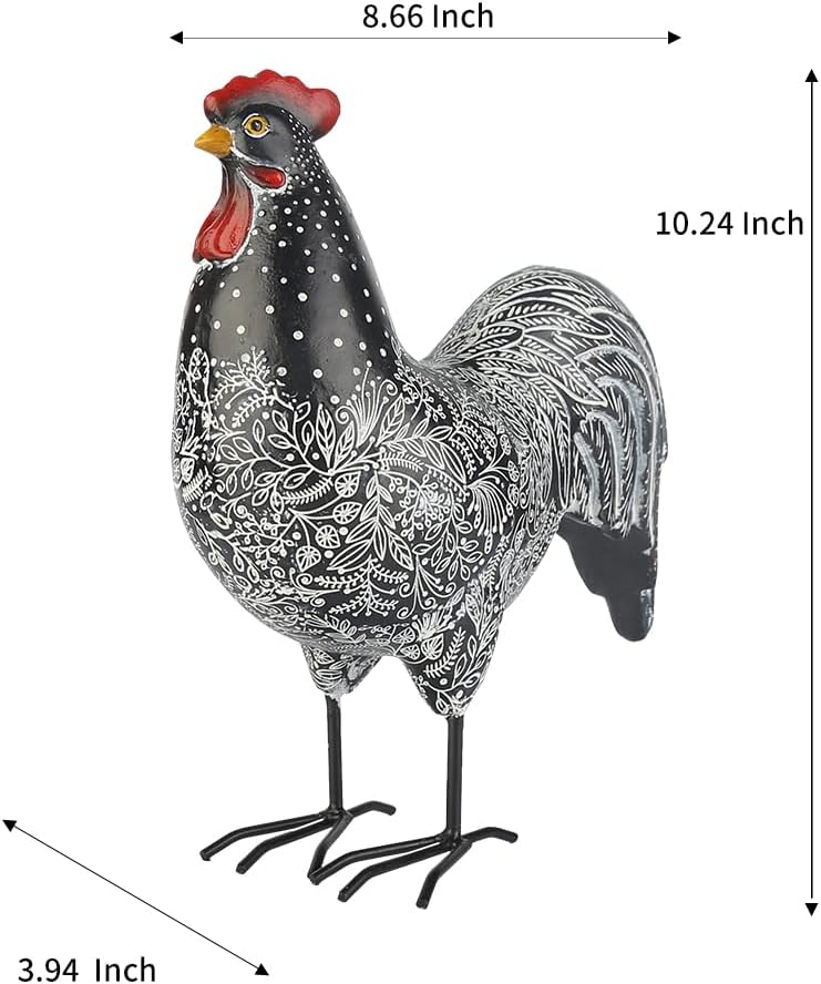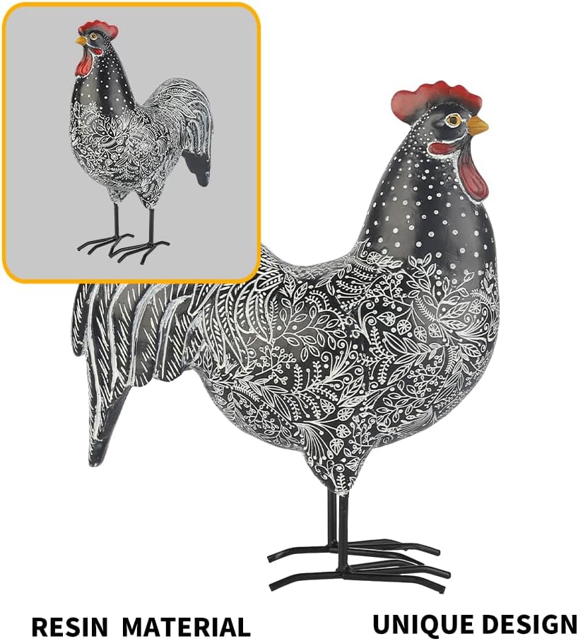Elegant rooster:This elegant resin rooster yard artwork is the proper complement to your yard, patio,yard, path and kitchen ornament.