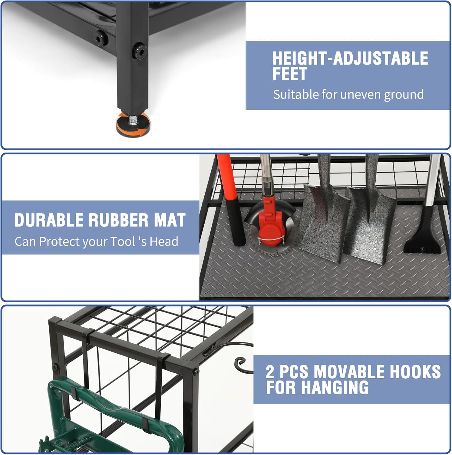 INNOVATIVE GARAGE ORGANIZATION: G-hooks permits for electrical instruments like string trimmer and a few instruments with D-grip deal with, height-adjustable toes appropriate for uneven floor, sturdy rubber mat can shield your energy backyard device ‘s head
