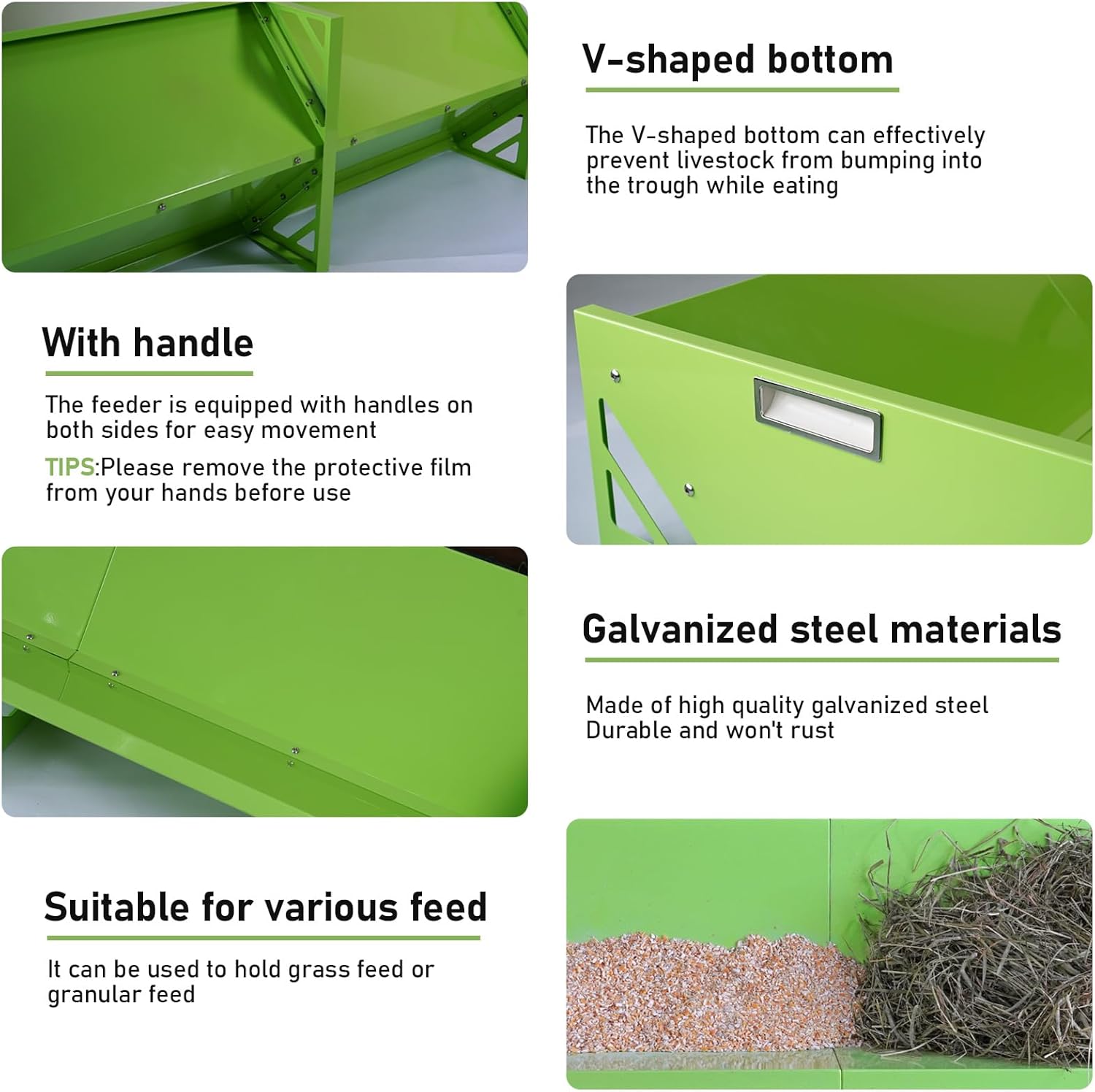 Heavy-Responsibility Steel Trough: The thickness of the goat feed trough plate is 1mm, the load is 24.5Lb it’s very sturdy. You may put varied kinds of feed and use it for varied animals.