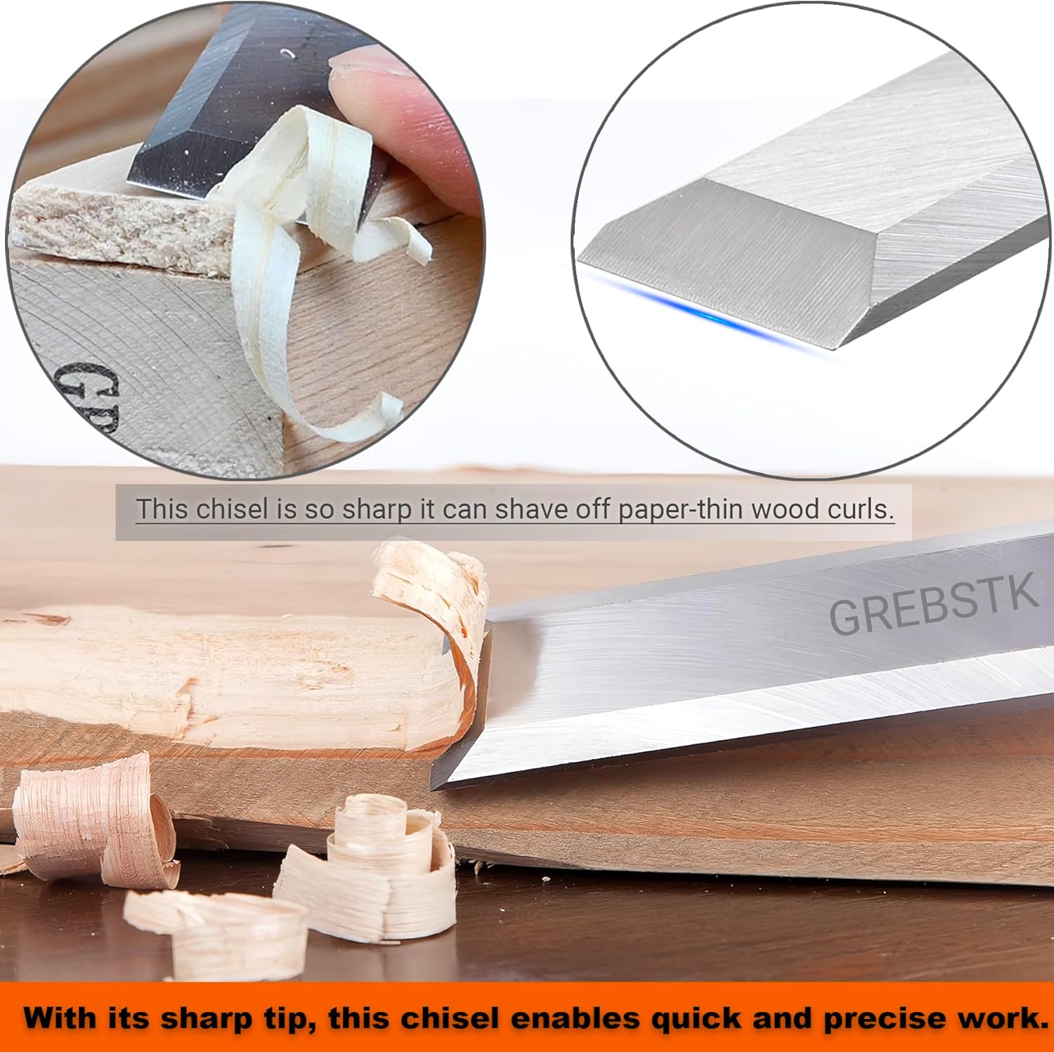 Drop-forged CR-V metal blades with precision heat-treated edges ship distinctive sharpness and enhanced sturdiness, enabling flawless end/paring cuts and mortising operations on wooden surfaces.