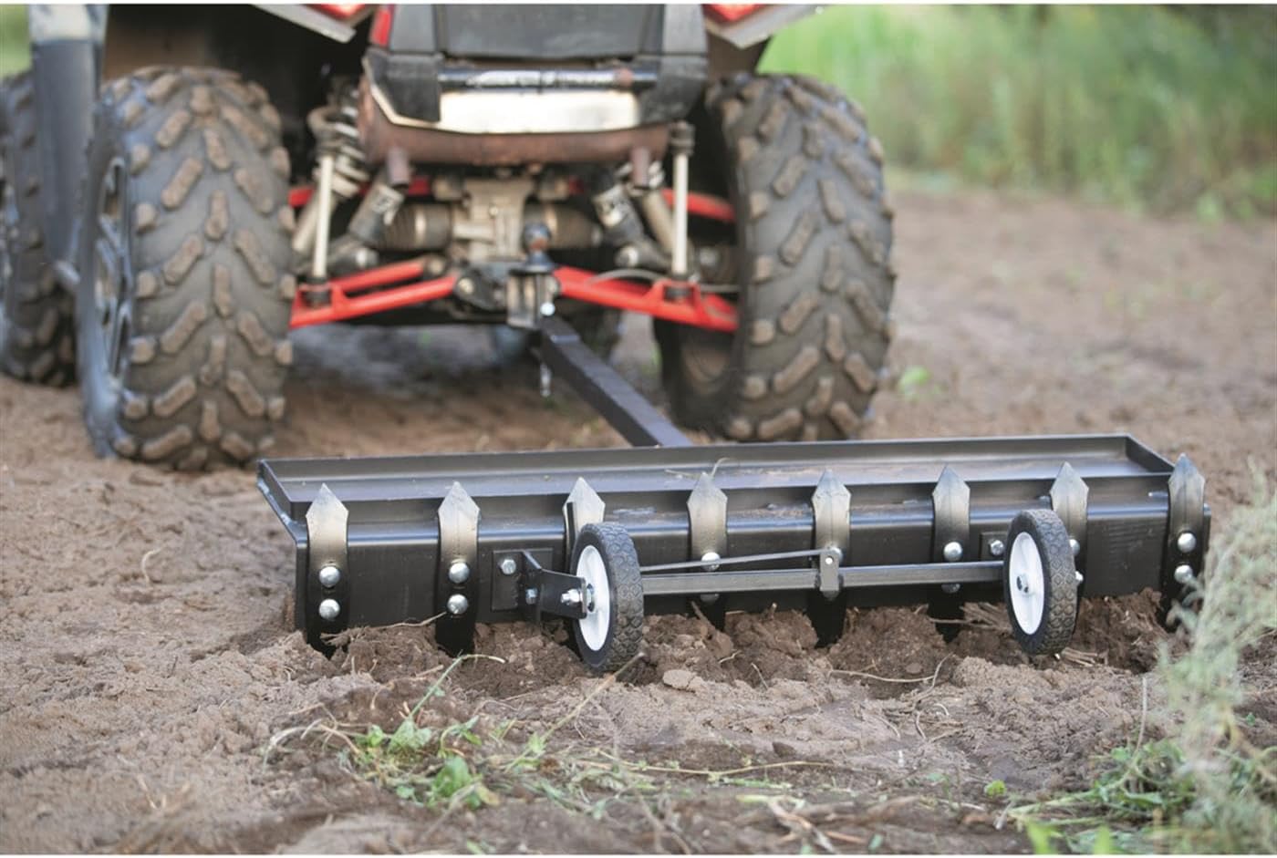 LOCK UP/DOWN – ATV tow hitch attachment could be locked in an up or down place for soil leverage and to regulate your technique of planting.