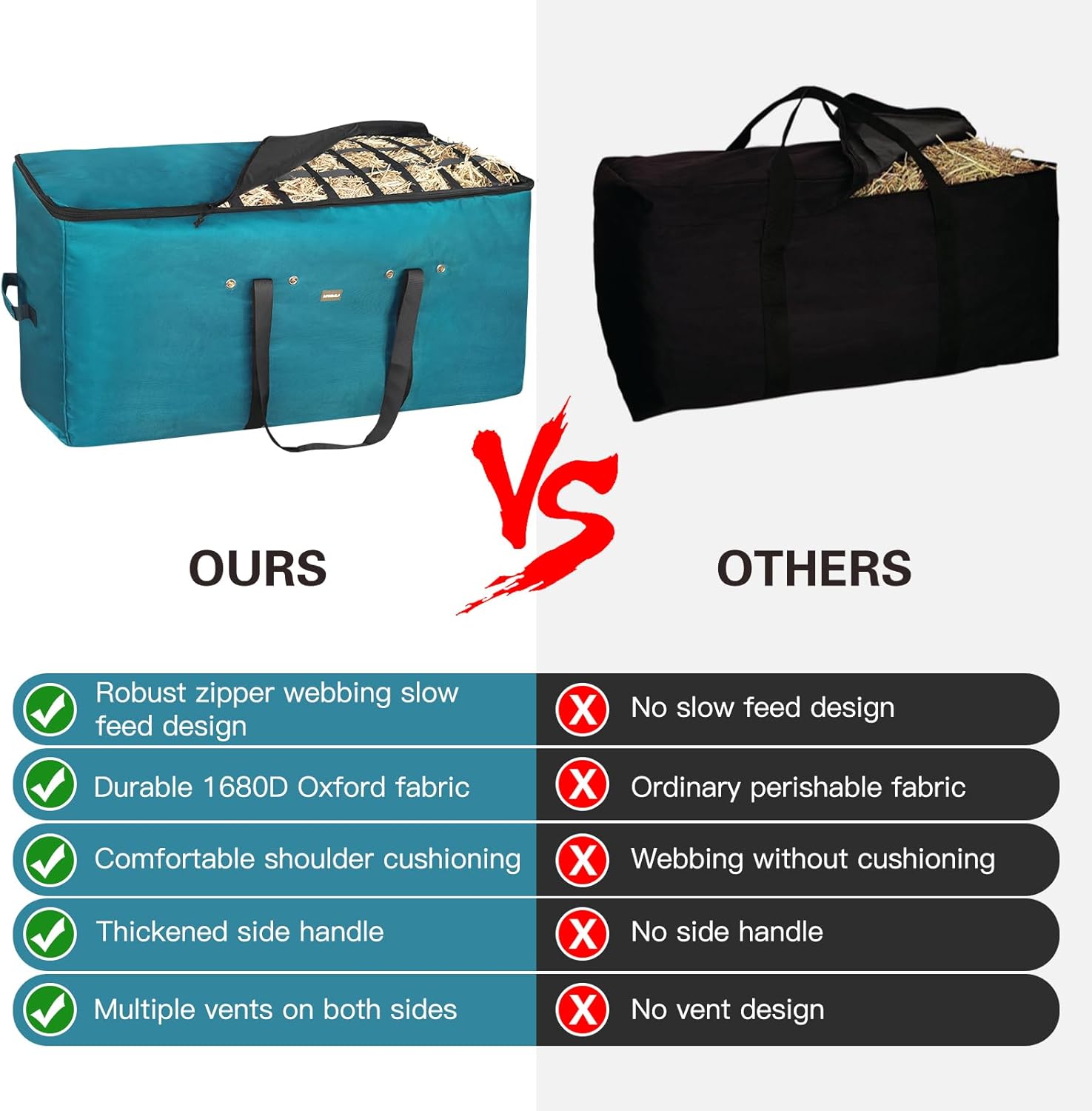 Contemporary Storage Design: The hay bag for horses options a number of air flow openings on either side, making certain air circulation to maintain the hay dry and contemporary. This design facilitates handy and environment friendly storage and transportation of hay, delivering wholesome hay feeding to animals and selling their total well being.