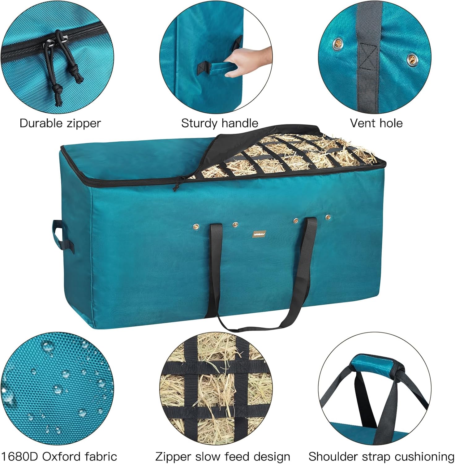 Portabe Hay Bag: Our hay bale bag include padded webbing and durable aspect carry handles to transferring and transporting hay.The three-sided all-wrapped zipper seal is simple to open and shut, Prevents hay from falling throughout transportation to maintain your automobile and steady clear and tidy.