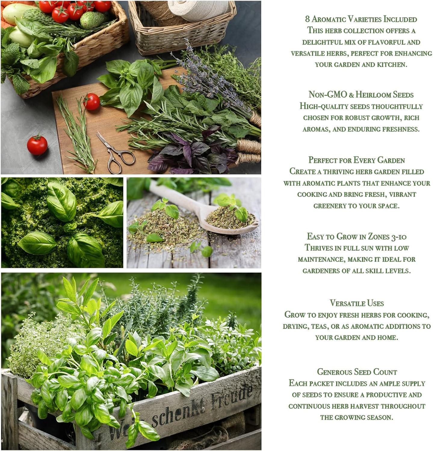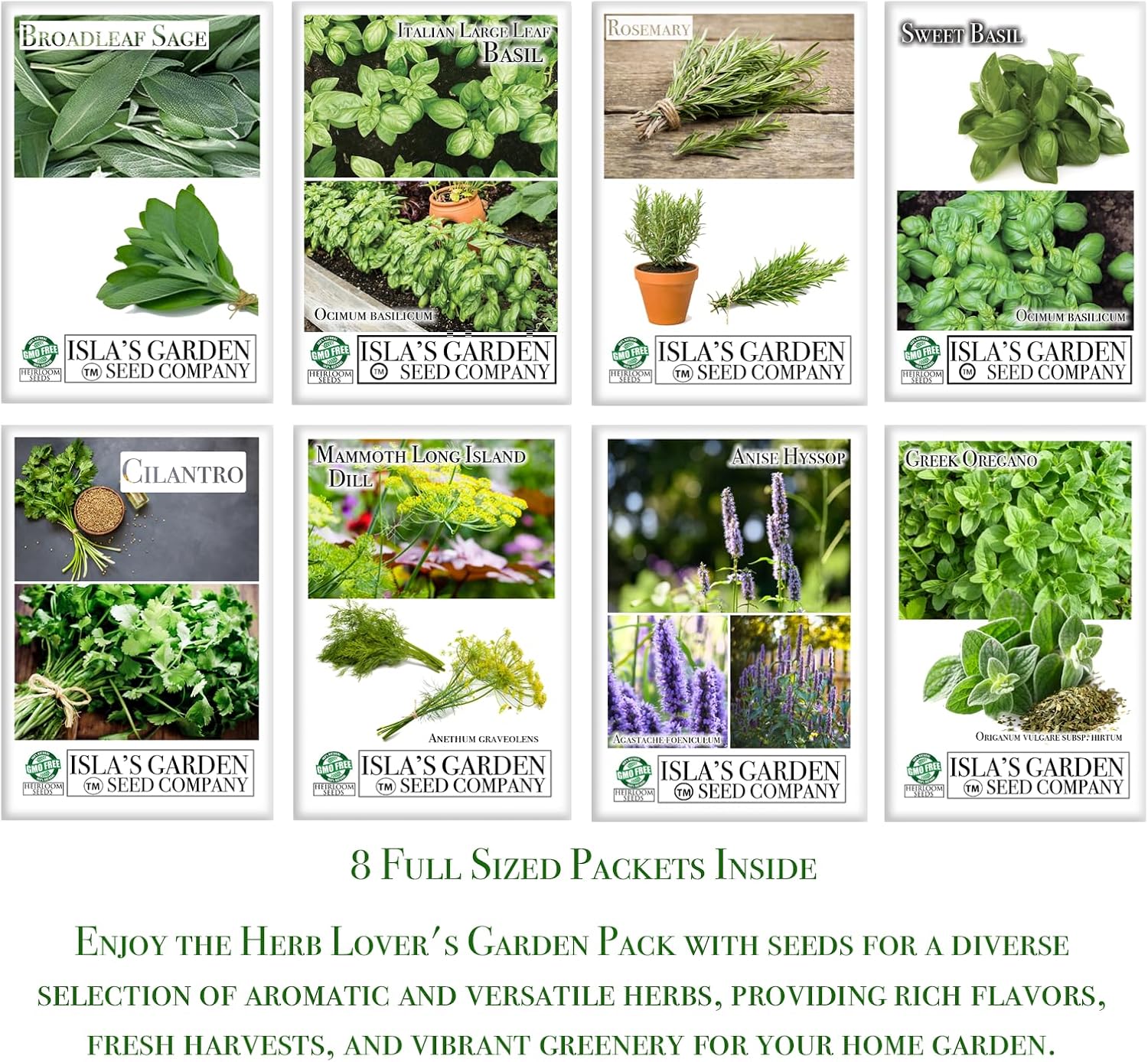 Herb Lover’s Garden Variety 8-Pack Collection Starter Kit by Isla’s Garden Seeds, Includes Basil, Oregano, Dill, Sage, & More, Perfect Fresh Aromatic Herbs for Cooking, Teas, & Thriving Home Gardens