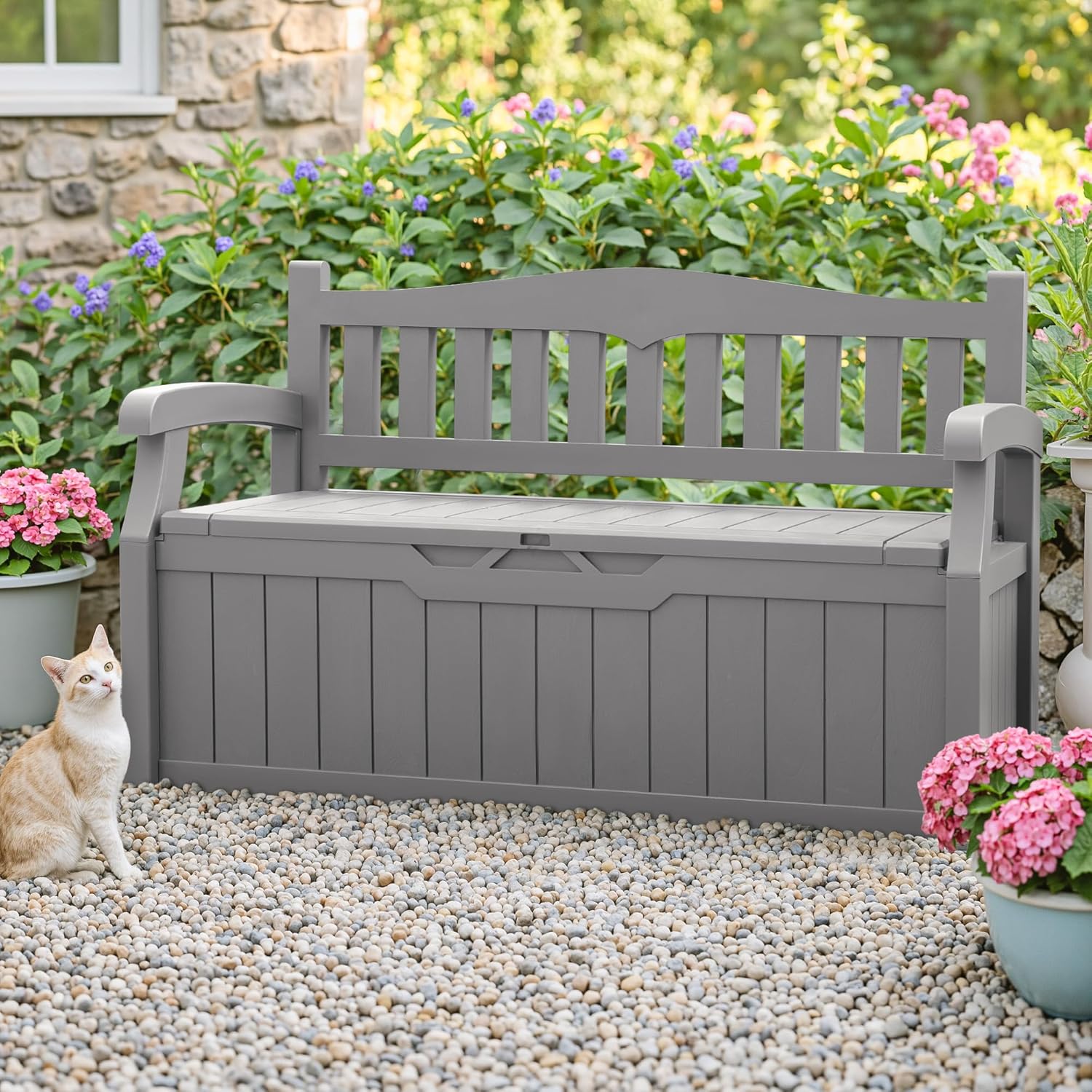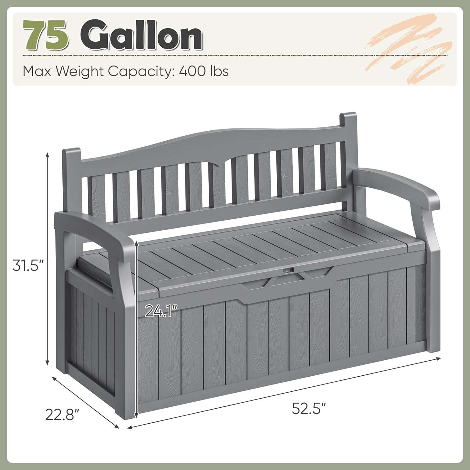 Large 75-Gallon Capability: Arrange patio cushions, gardening instruments, pool toys, and seasonal objects effortlessly. Open lid design retains contents dust-free and discreetly hidden.