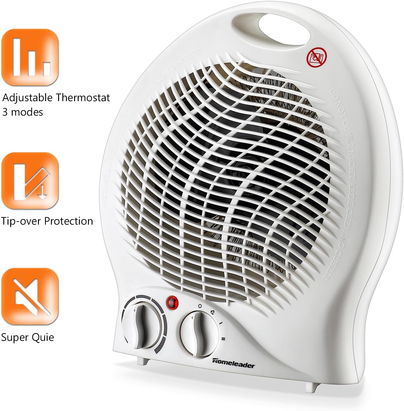 Choose from 3 quiet settings:excessive warmth, low warmth, or fan solely.