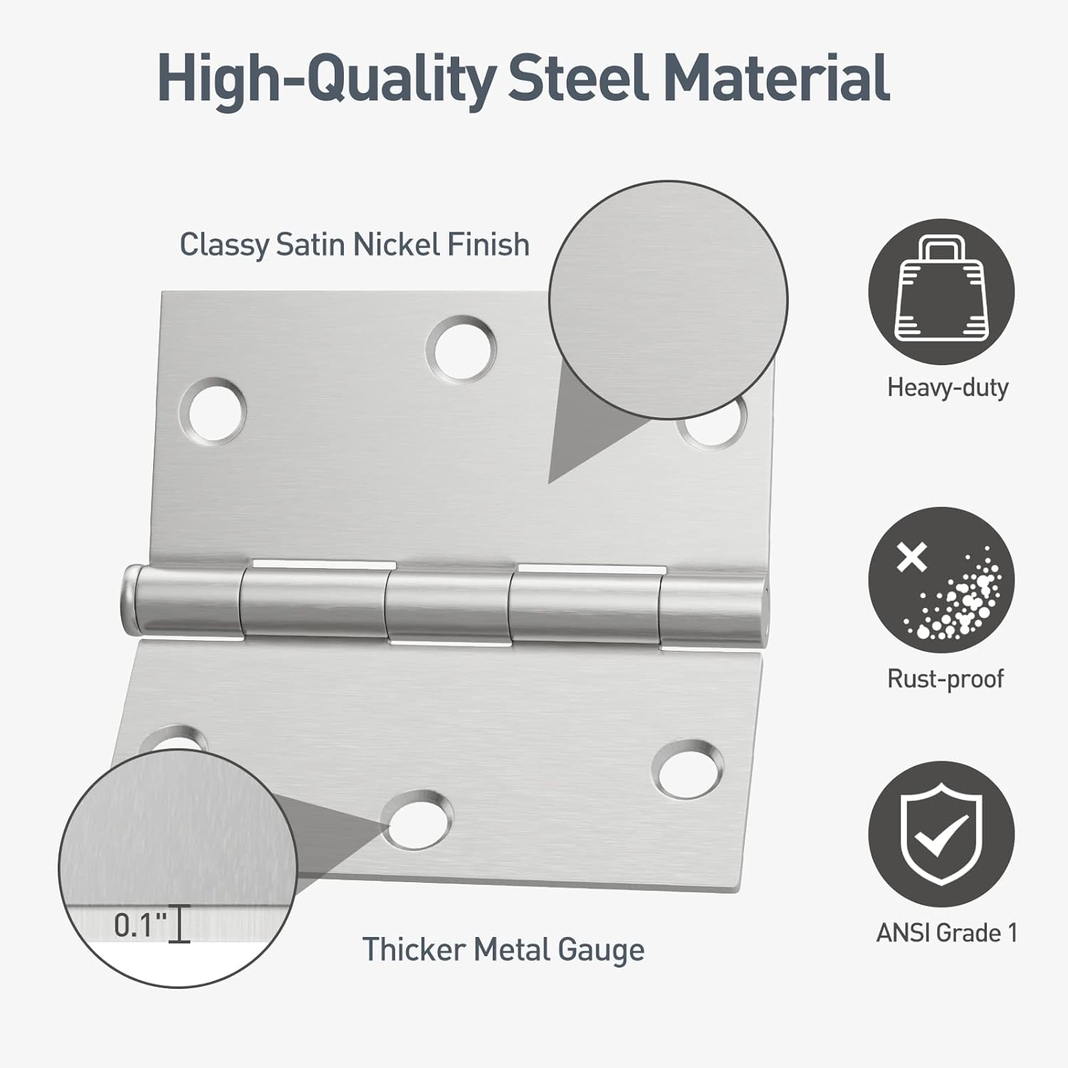 【Premium High quality】 Made of industrial quality metal with a satin nickel end for rust and corrosion resistance and has the ANSI GRADE 1 certification, guaranteeing an extended service life.
