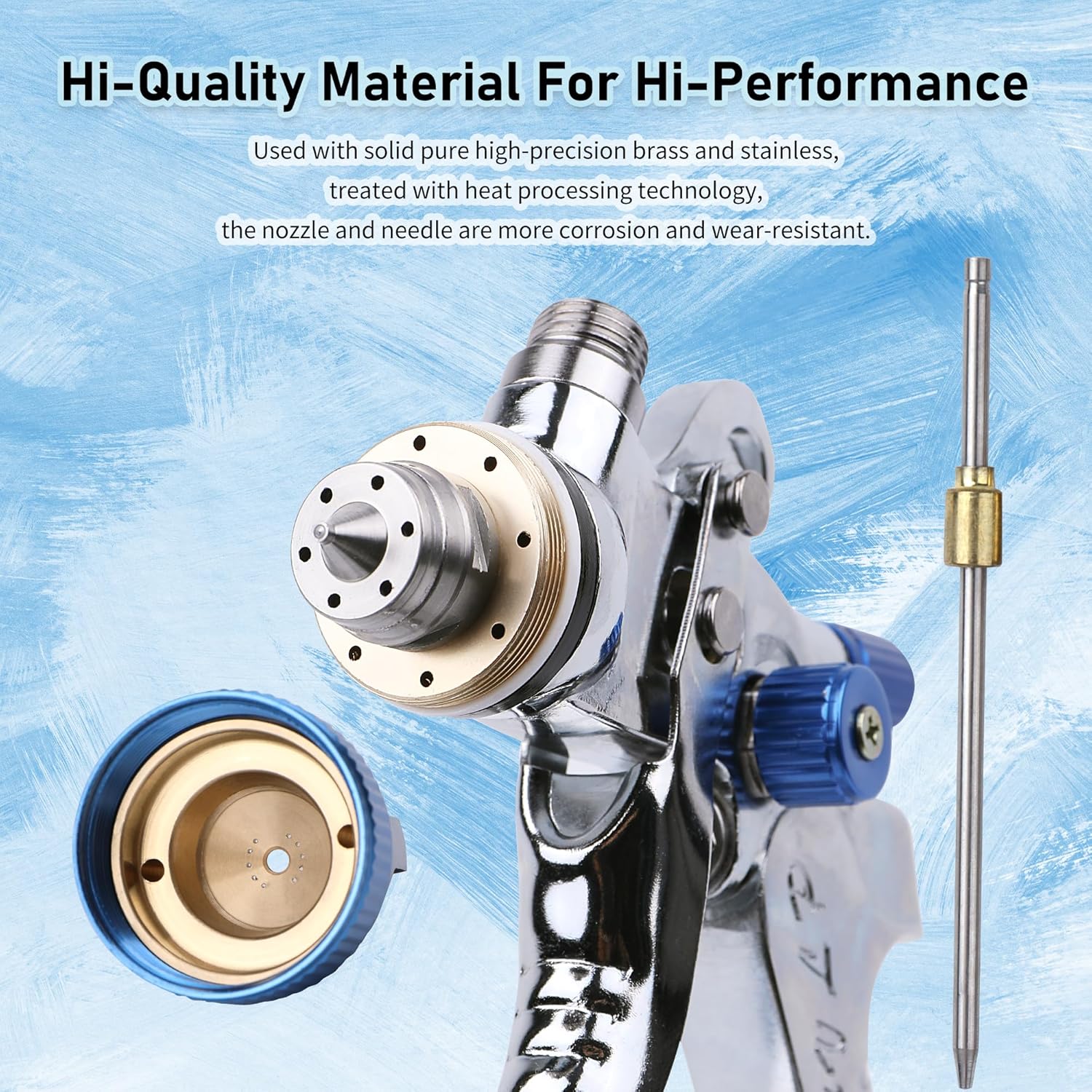 Our Advantages: This HVLP spray gun kit provides 4 nozzles of 1.4mm 1.7mm 2.0mm and 2.5mm, which can fully meet your various needs. Equipped with high-quality brass air cap, high-grade stainless steel needle, and nozzle, making the painting more smooth and even. Package includes 1×600CC pp paint cup and also 1 quick paint mixing cup, more choices for you.
