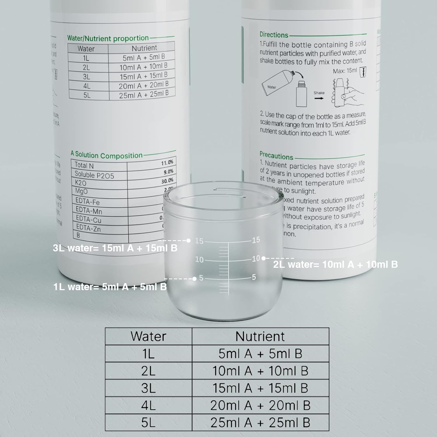 [Easy Formula] Combine up 5ml A + 5ml B nutrient into each 1L water. Straightforward components to recollect 5:5:1000.