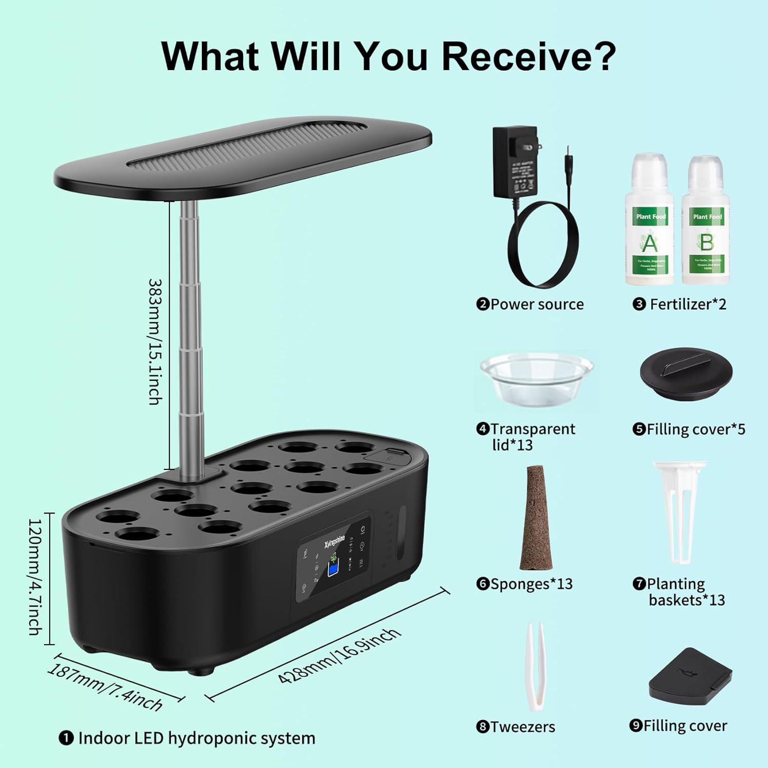 hydroponics rising system package, indoor herb backyard, good hydroponic planter, adjustable led develop mild, indoor gardening system, 13 pod backyard package, liquid crystal display contact panel hydroponics, 17.5 inch adjustable peak, vegetable grower system, lettuce hydroponic backyard, indoor vertical farming, natural herb backyard, newbie hydroponics package, quiet water pump system, vitality saving develop mild