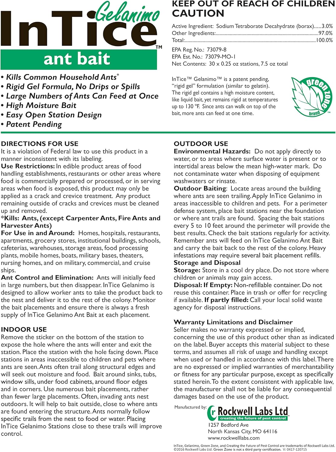 Options an easy-to-remove sticker that covers the outlet for ants, permitting for fast, tool-less placement within the area. Low profile design (just below 1/2″ excessive) for straightforward placement underneath home equipment, on slim ledges corresponding to window sills, and different out of the best way locations. Makes use of a foil high, stronger seal and high-tech plastic building to reduce moisture loss in storage and in use. The brand new design minimizes the potential for non-target contact with the bait.