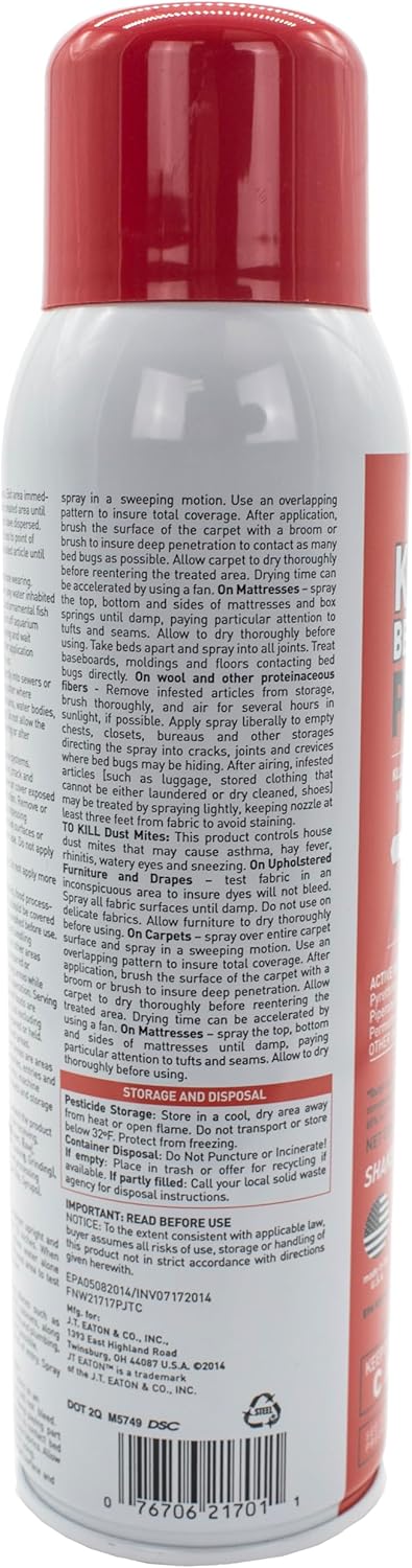 The JT Eaton® 217P Kills Mattress Bugs Plus Aerosol Insecticide Spray presents a fast and efficient resolution for eliminating bedbugs, mud mites, ants, and roaches. Its water-based method offers quick outcomes with no harsh odor, making it ultimate for indoor purposes. Providing as much as 12 weeks of safety, this aerosol spray ensures long-lasting pest management, focusing on a number of bugs with a single remedy. Good for residential and business use, it helps keep a pest-free setting with ease. Belief JT Eaton’s long-standing dedication to high quality and innovation in pest management merchandise since 1932.