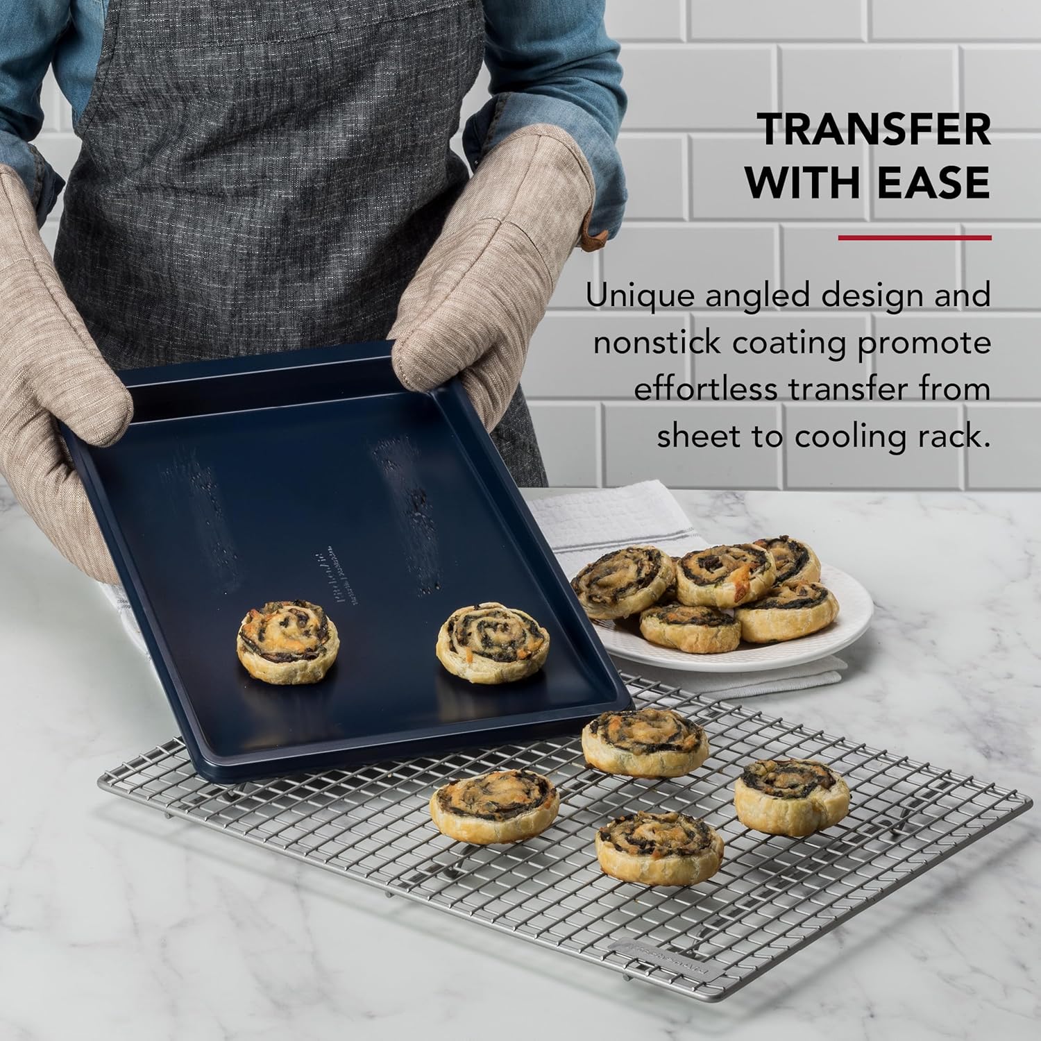 TRANSFER WITH EASE: Distinctive angled design and nonstick coating promote easy switch from sheet to cooling rack