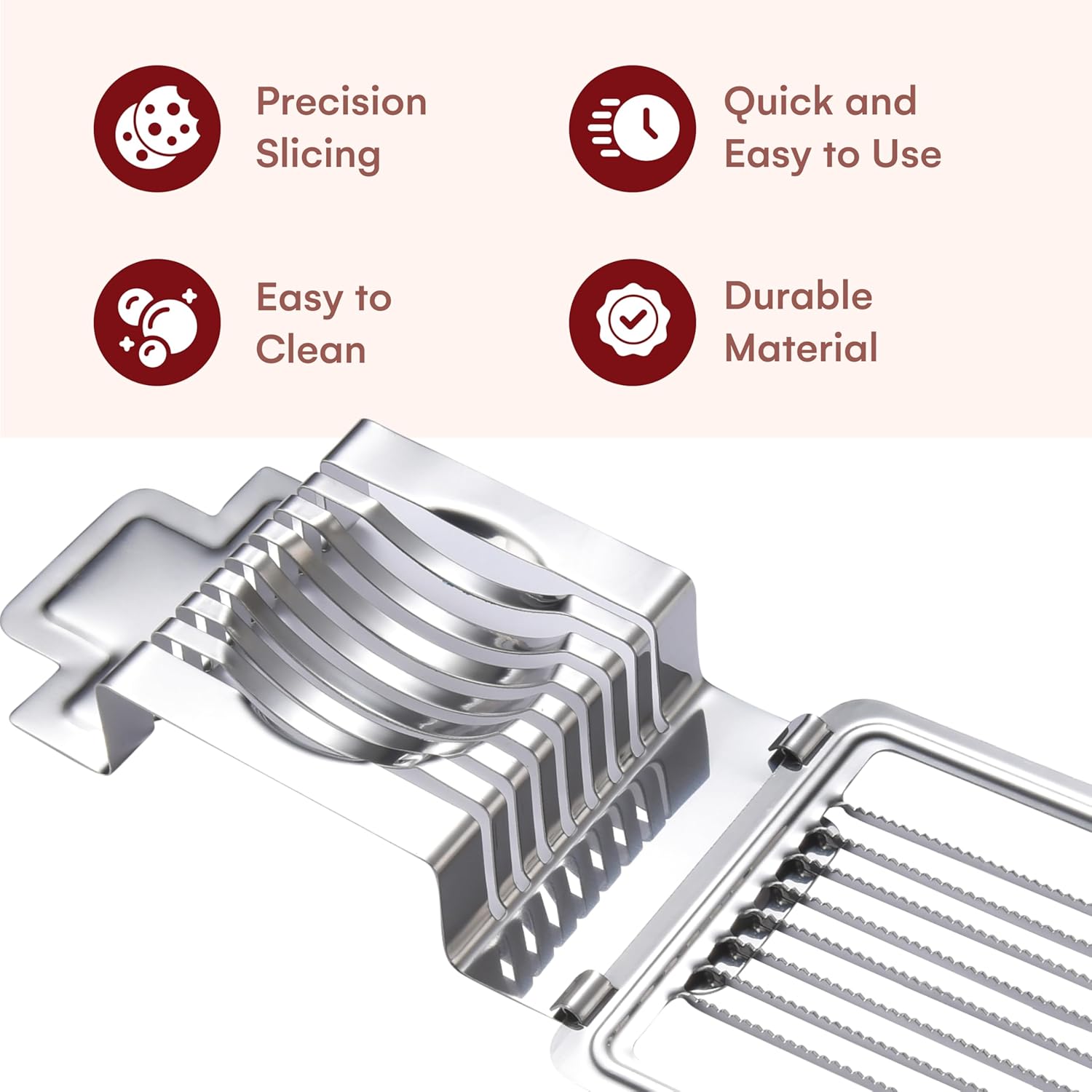 Dishwasher secure for simple cleansing and upkeep. Cleansing up after utilizing the egg slicer is a breeze, due to its dishwasher secure design.
