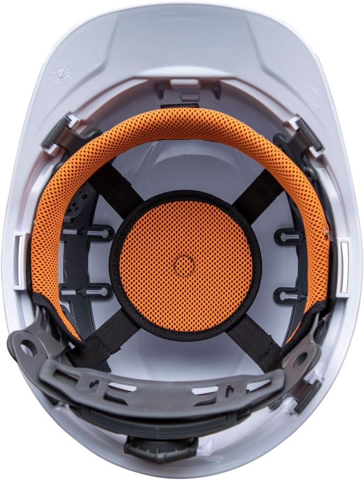 Security exhausting hat has patent-pending accent mounts on back and front guarantee elective Klein Headlamps connect securely and exactly, each time — no straps or zip ties wanted!