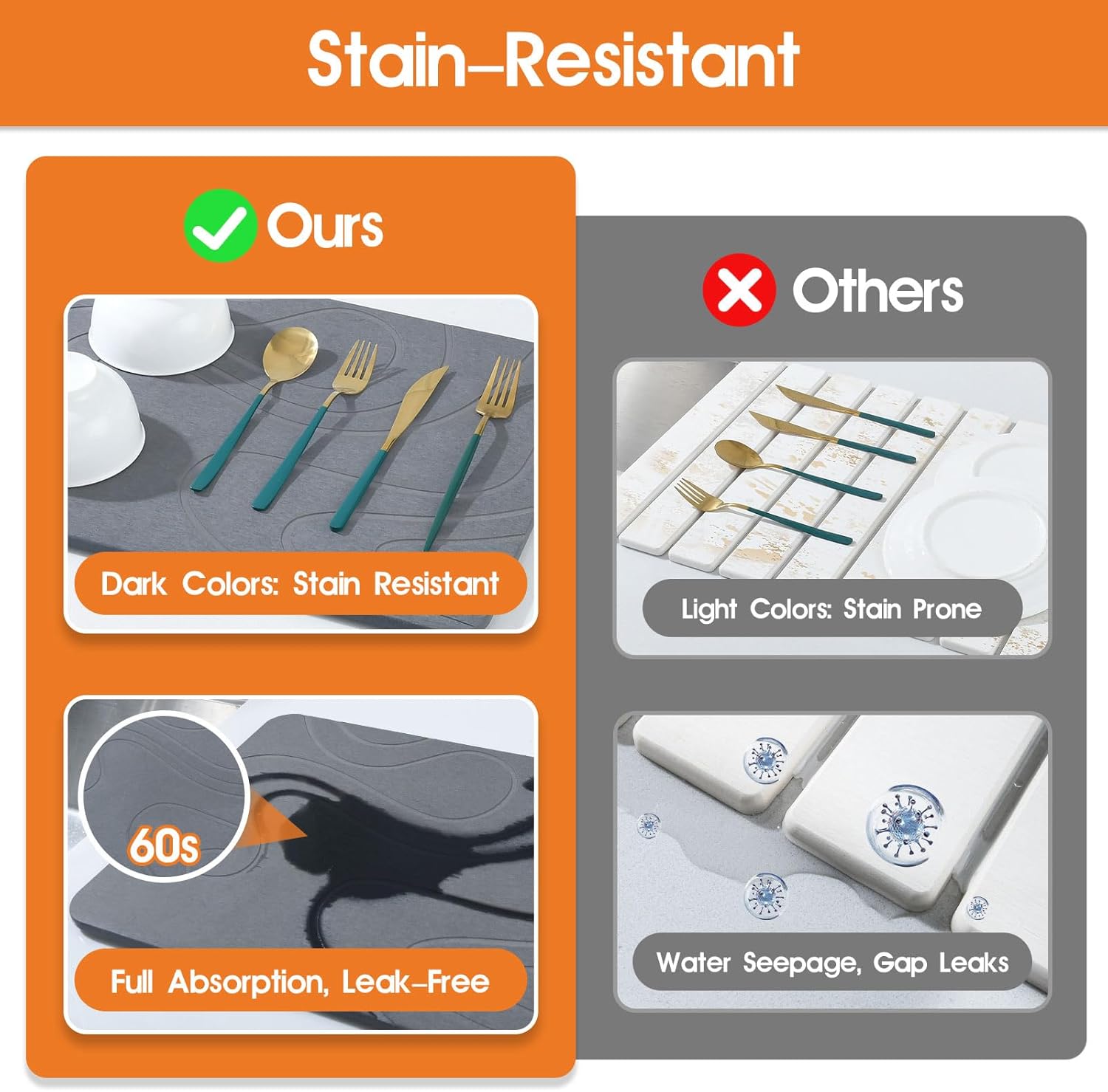 𝐐𝐮𝐢𝐜𝐤 𝐃𝐫𝐲𝐢𝐧𝐠:The stone drying mat absorbs moisture from dishes in seconds and absolutely dries them inside minutes. Its drying effectivity is a number of occasions better than that of silicone and cloth mats, stopping disagreeable odors and water stains