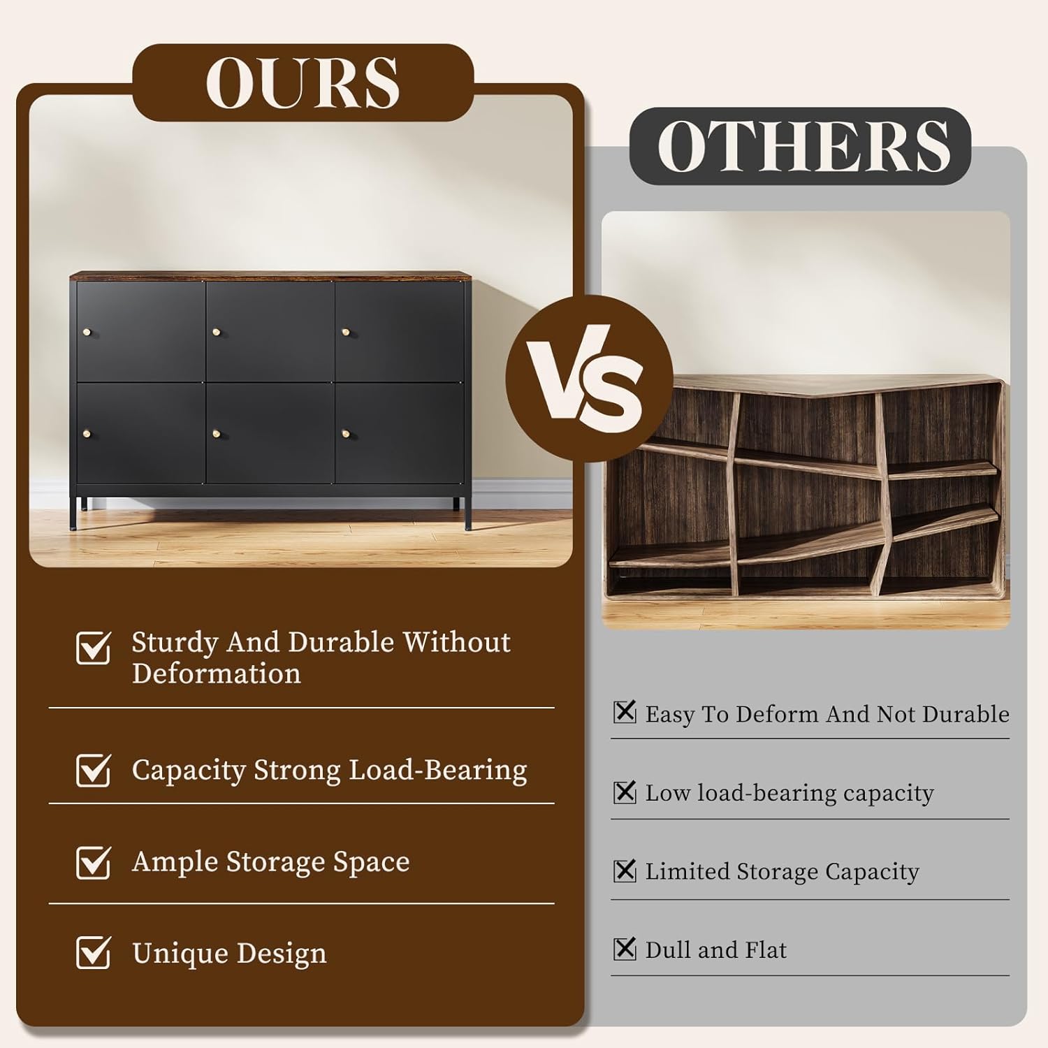 『Steady and Protected Design』Constructed with a sturdy metallic body and a stable wooden prime, this storage dresser affords dependable help in your objects and TV. That includes adjustable toes, it stays regular on uneven surfaces, stopping unintended tipping or scratches to guard each your loved ones and flooring.