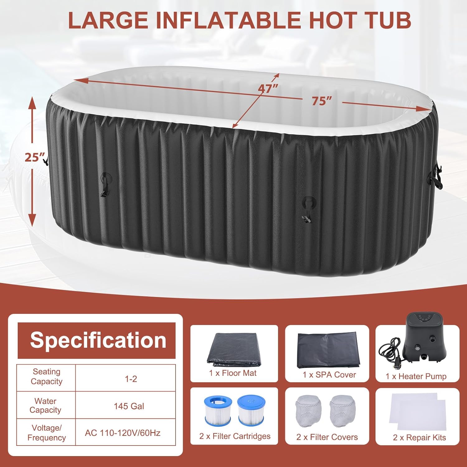 BUBBLE JETS MASSAGE – Bask in supreme leisure with the inflatable sizzling tub SPA, boasting 100 air jets that generate 1000’s of bubbles, offering a mild therapeutic massage expertise for 1-2 individuals to comfortably benefit from the leisure and soothing heat hydrotherapy