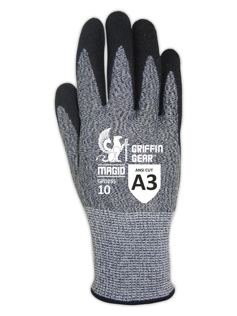 MAGID® Griffin Gear® ANSI A3 Hyperon® Blended Sandy Nitrile® Coated Work Gloves ship fundamental reduce safety at an inexpensive value. The light-weight work gloves are designed to carry out in moist or dry situations, with Sandy Nitrile® grip know-how that delivers a rock-solid maintain. The ANSI degree A3 cut-resistant gloves characteristic a breathable 15-gauge Hyperon® blended shell for light-weight efficiency and funky consolation that lasts. The ultra-flexible gloves ship superior safety and tactile sensitivity whereas sustaining sufficient flexibility to grip small objects. The elasticized cuff retains the gloves in place and permits for straightforward on/off to enhance compliance. The work gloves are snug sufficient to put on throughout long-duration jobs and are perfect for duties the place you want an incredible diploma of flexibility together with an enhanced grip. The multi-purpose work gloves can be utilized in any trade and likewise ship ANSI abrasion degree 5 safety and ANSI degree 2 puncture resistance.