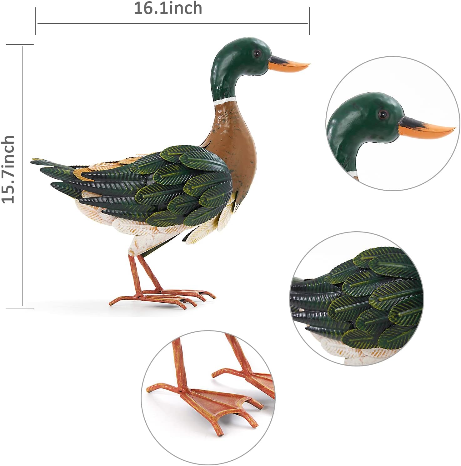 Lifelike duck sculpture: Type beautiful hand-painted surfaces to textured feather designs, this lovely steel duck provides additional enjoyable and creativeness to your backyard.