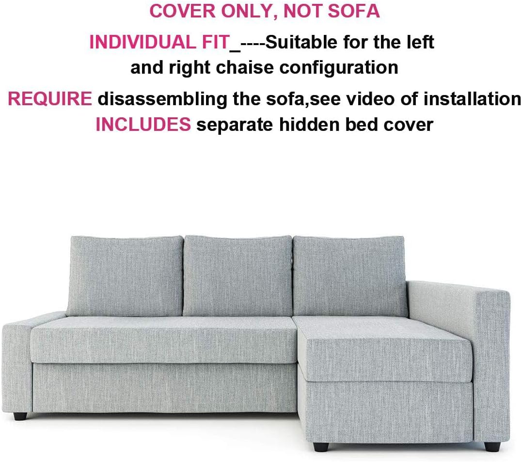 【Pullout Mattress cowl is included】 Separate covers for the pullout mattress . It may be totally opened and no hidden material will probably be uncovered. One Set have 11 particular person items (3 again cushion covers ,2 seat cushion covers, 1 couch most important cowl, 2 pcs for chaise cowl and a pair of pcs for armrest cowl, 1 computer for pull out mattress) . Every half has label to know the place it belong to.