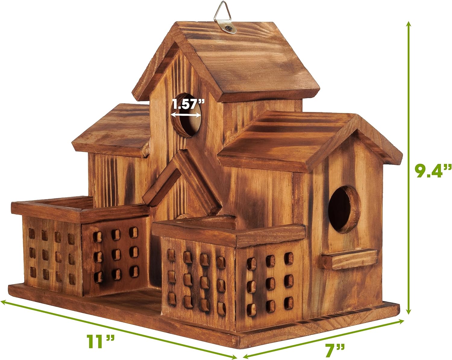Further 2 Chook Feeder: Not solely is a standard 3-room Chook home, it additionally has 2 extra hen feeders within the entrance which could be very handy. The seeds within the hen feeder will entice birds to come back and nest, in addition to present a supply of seeds for birds as soon as settled right here.