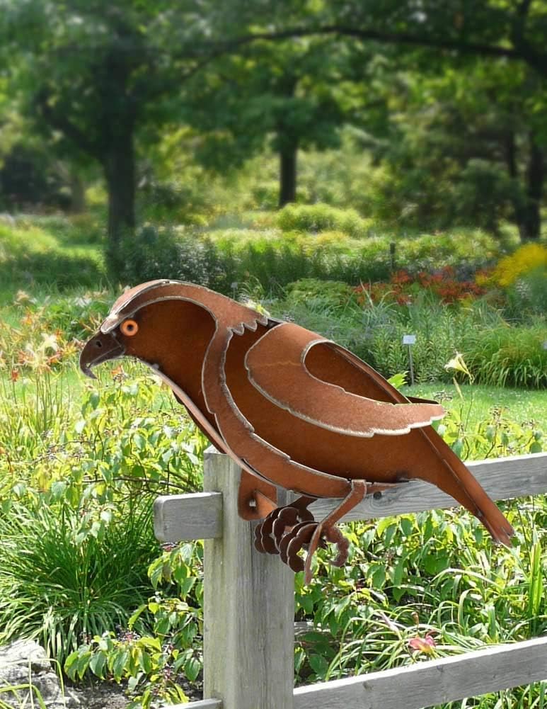 The metallic artist fashions every hawk from rusted metal, formed and welded with ingenuity and creativeness