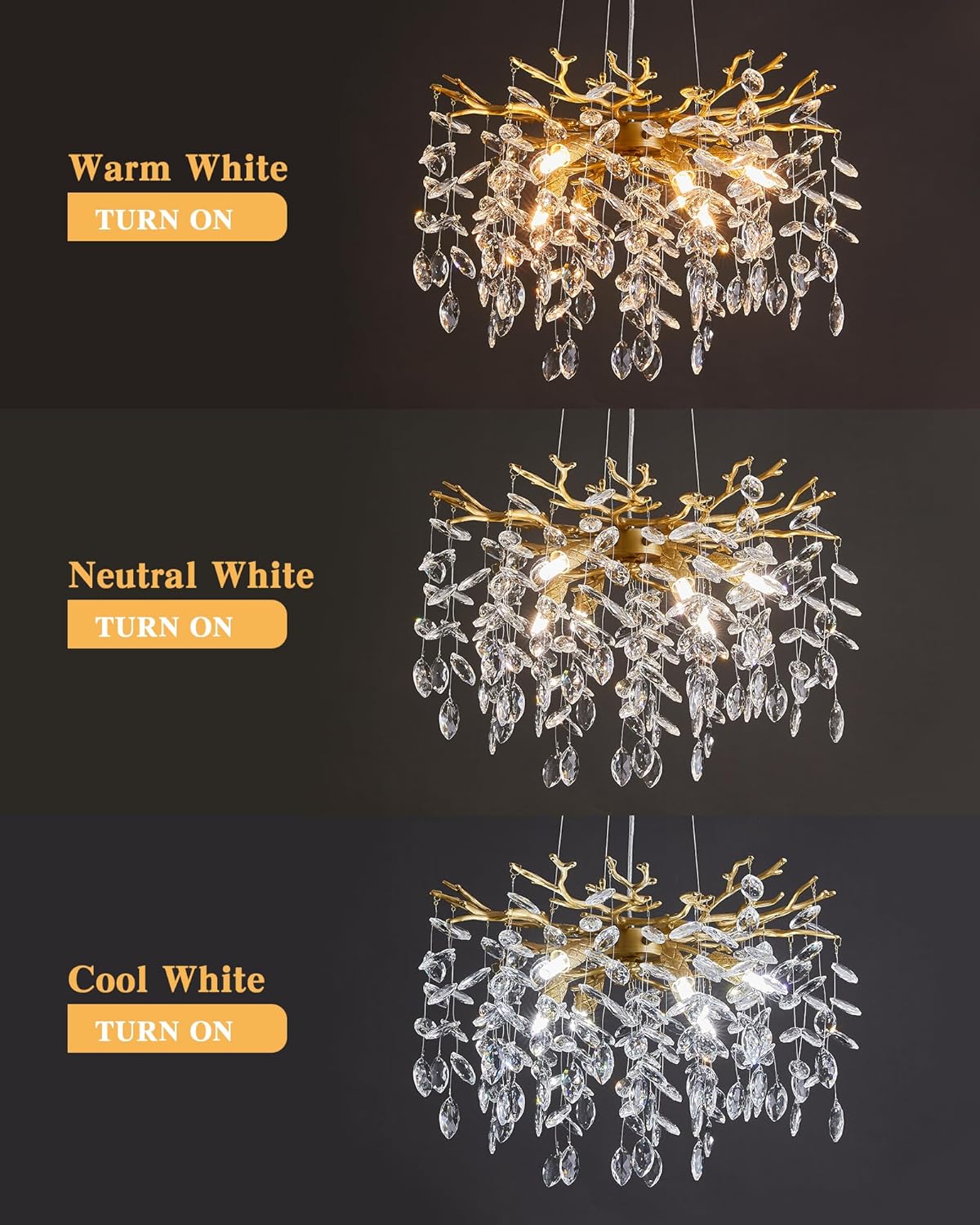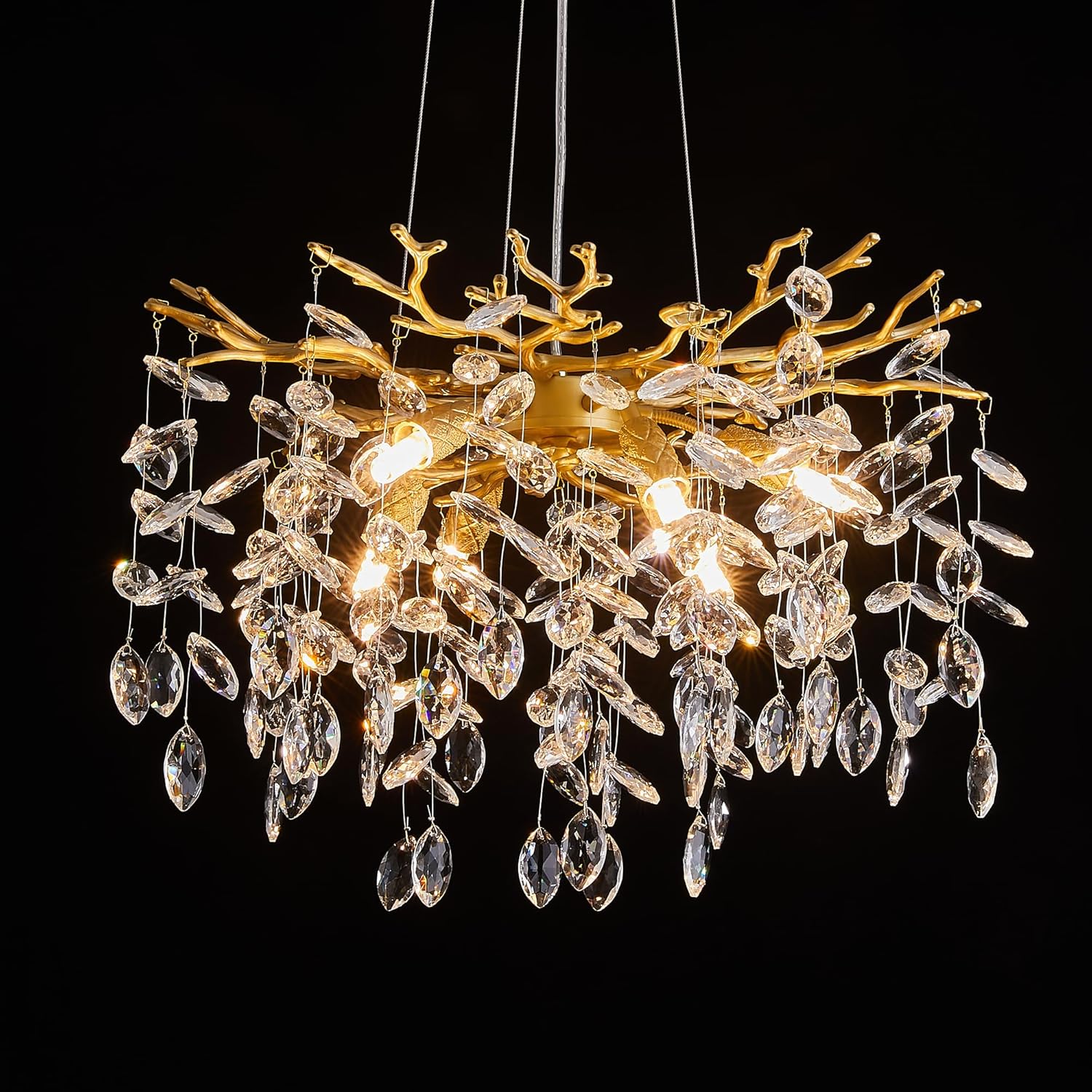 Trendy Tree Department Crystal Chandelier: The floor of the chandelier is accomplished by metallic plating course of, corrosion resistance, rust prevention, straightforward set up. The gold stems are thickened and encrypted, and the branches will be adjusted manually. Glowing crystals are strung throughout the branches of this mild fixture. Crystal Tree department chandelier lighting is ideal for luxurious and it helps to create an expensive and vibrant ambiance within the room