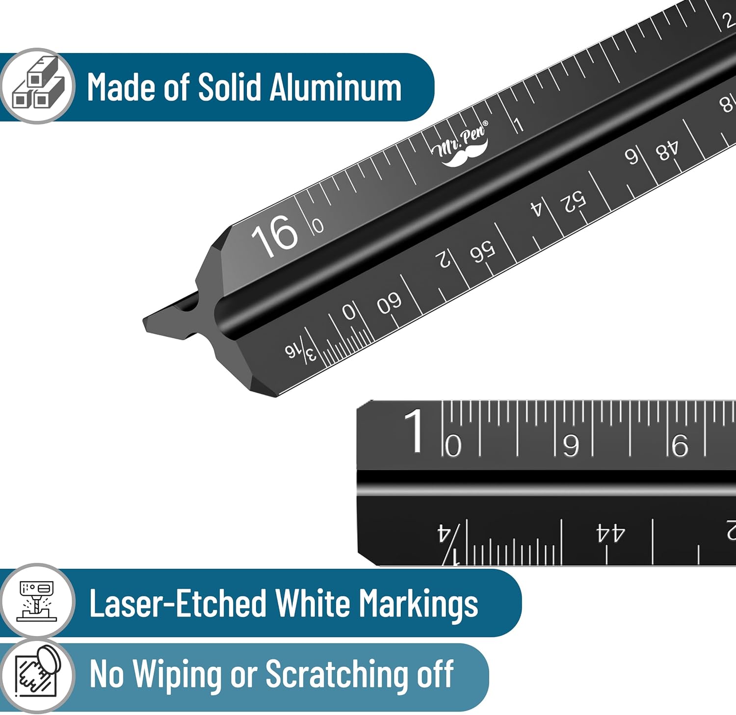 Mr. Pen architect aluminum ruler is designed with laser-cut imperial prints that guarantee long-lasting accuracy and sturdiness with out the danger of wiping or scratching off.