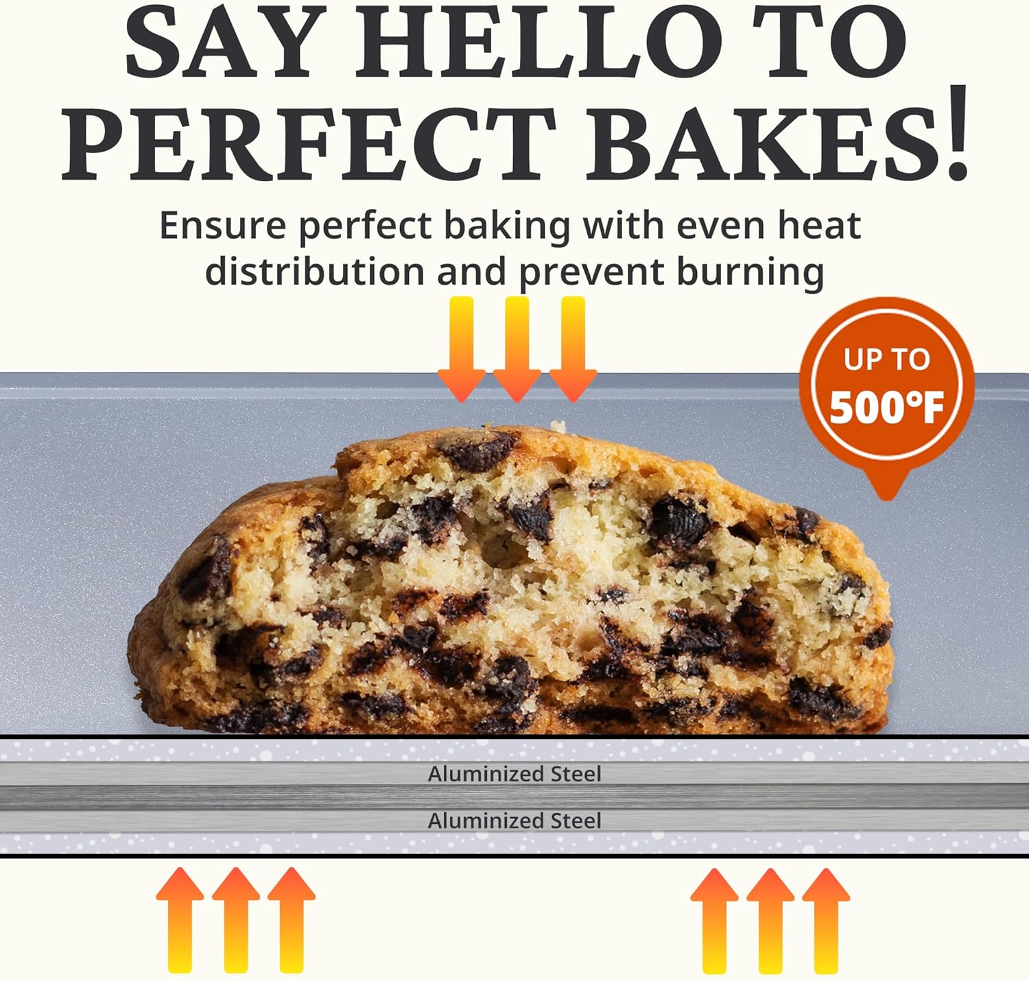 Pure Ceramic Nonstick Coating: Expertise 70% higher nonstick efficiency on cookie sheets for baking. Our ceramic coating ensures easy meals launch and is free from PTFE, PFOA, PFAS, PFOS, lead, and cadmium, guaranteeing a secure and non-toxic cooking expertise.