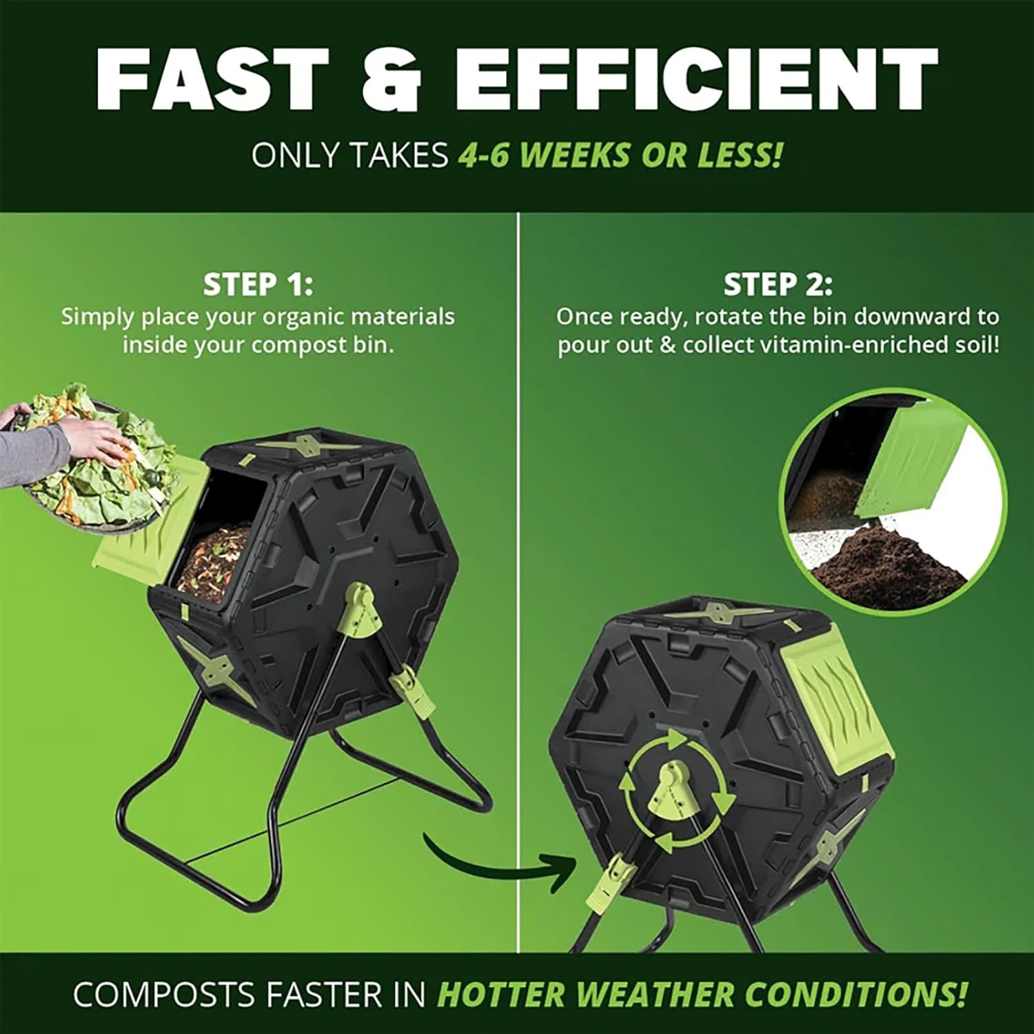 ✅ Easy tumbling for sooner, odor-free composting