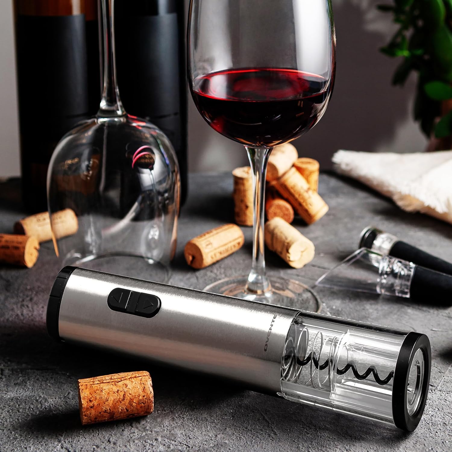 UPGRADED MATERIAL & DESIGN – Crafted from sturdy chrome steel and high-quality ABS, this electrical wine opener is constructed to final whereas providing a cushty grip. With its highly effective motor system, it effortlessly removes corks in simply seconds, enhancing velocity and ease for a seamless wine-opening expertise.