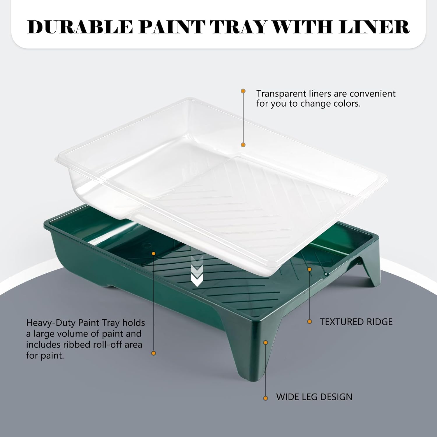 Intimate Design: Paint tray has a deep effectively to carry loads of paint and incorporates a texture design for even distribution. The concave and convex inside grain reduces waste and splashing throughout use. Two alternative liners are included for straightforward clear up