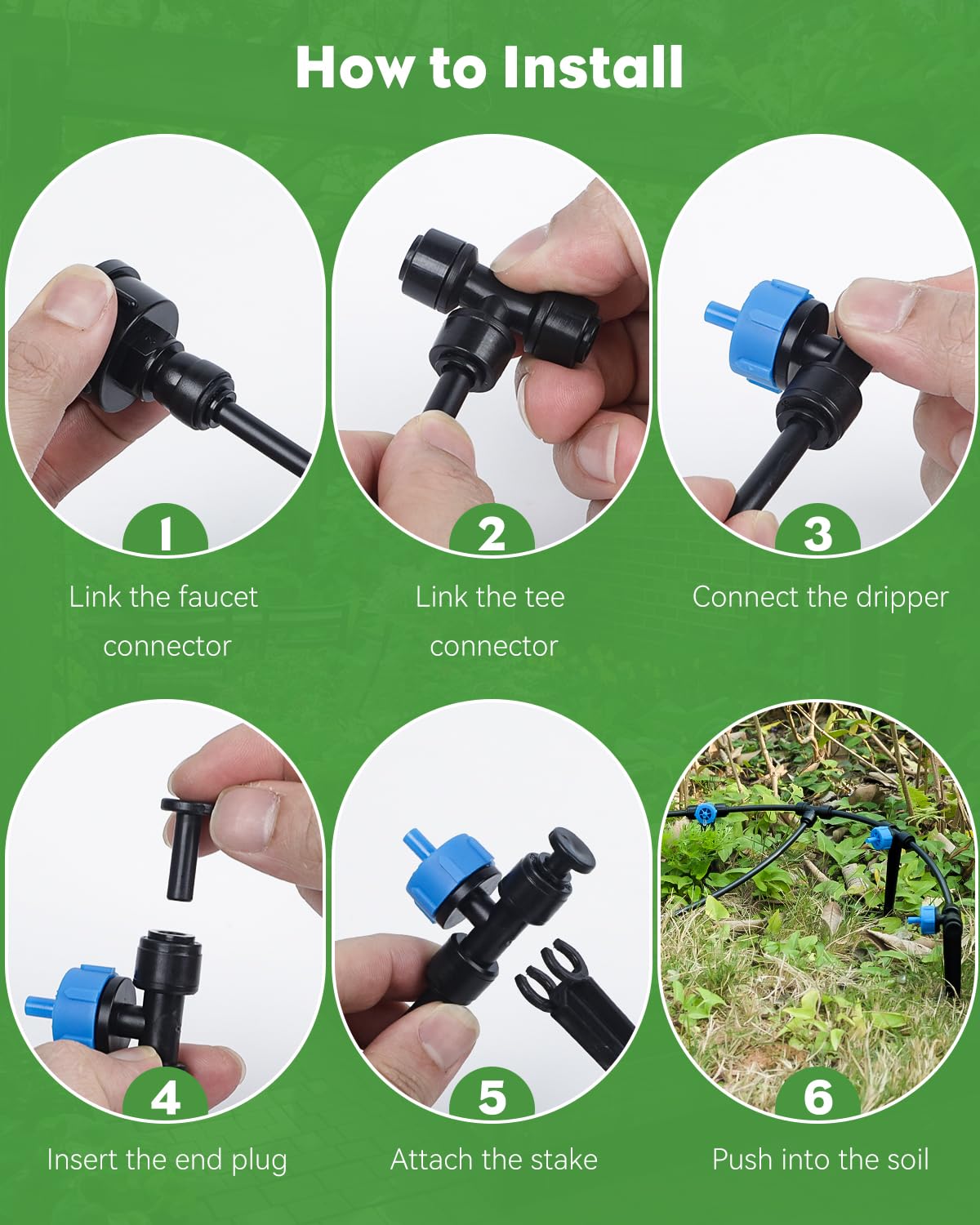 Device-Free Push-to-Match System: Saves 80% setup time. Merely push the tubing into the inlets of the drippers or connectors in 3 seconds – no warmth instruments required! Detach immediately by urgent the Leakproof Locking Collar.