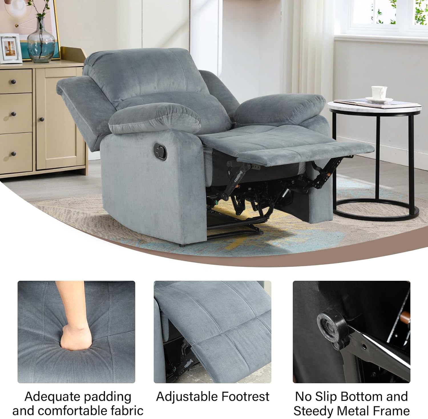 【Measurement & Simple Assemble】The dimension of this guide recliner: 34.8”W x 35.9”D x 40”H, appropriate for many People. Simple to assemble in minutes utilizing packaged components and instruments with clear and concise directions. Phoenix Residence gives free alternate for set up issues, broken and lacking components with 1-year guarantee assure, be at liberty to contact us for any buy.