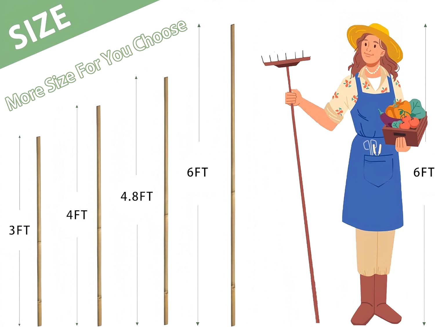 [Multi-purpose] – This dimension bamboo pile is appropriate for indoor vegetation similar to flowers and potted vegetation, in addition to out of doors vegetation similar to tomatoes, beans, greens, younger timber, giant flowers and potted vegetation. Because the vegetation develop, our bamboo posts are capable of help the expansion of the vegetation and make the vegetation develop straighter and extra stunning, or you should use some easy instruments to make a bamboo body, flower lattice or every other construction you need to add additional structural magnificence to the backyard