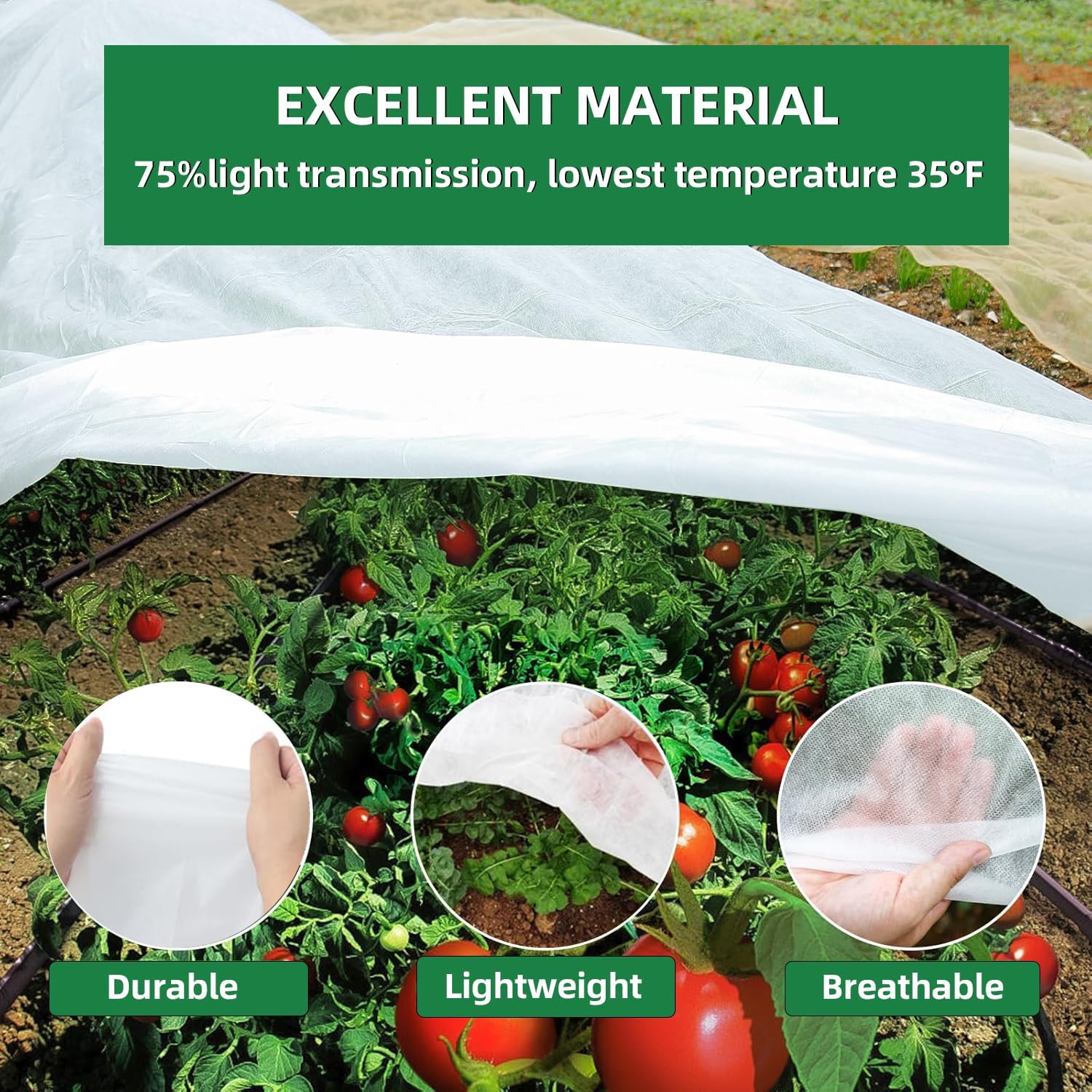 THICK FABRIC WITH UV PROTECTIVE COATING – The frost blanket is manufactured from 0.74 oz/yd² top quality spun polypropylene material, defending crops from the intense chilly of winter lowest temperature to 35°F. Light-weight, and breathable, permitting air, daylight, and moisture to achieve your crops. Robust, sturdy and never simple to tear, our plant antifreeze blanket is thicker and hotter. 75% gentle transmission, with UV safety coating, present higher and lasting safety to your crops