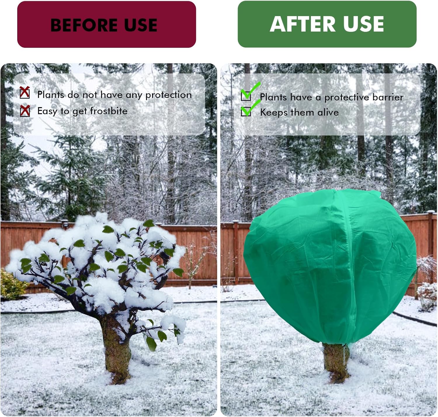 All-round Winter Safety: Along with the unique drawstrings and zippers, we additionally considerately connect adjustable cable ties to the freeze blanket, which is especially tightly wrapped and the closure is additional enhanced, in order that your crops can get complete safety from chilly currents, snow, wind, freezing temperatures and pests.