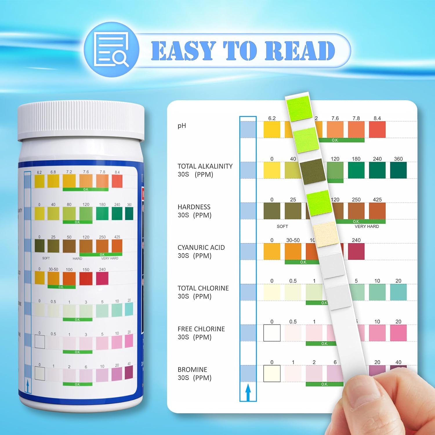 Simple Speedy Correct Testing: Our take a look at strip is straightforward to make use of, with simply 3 steps to get lab-grade correct ends in 30 seconds. Our take a look at strips use high-sensitive supplies to make sure that every testing result’s correct and dependable, serving to you handle your pool water at a superb degree