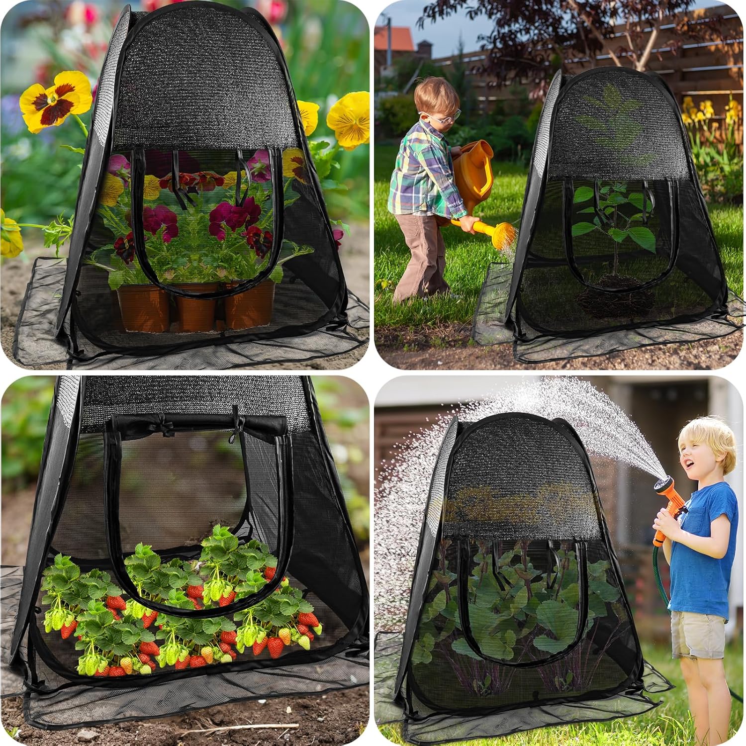 Pop up Plant Shade Tent, Plant Shades for Outdoor Plants Mesh Plant Cover with 8 Stakes Pop up Gardening Net Cover with Zipper Door Pest Guard Cover Protect Outdoor Plants from Animals( 28x28x32in)