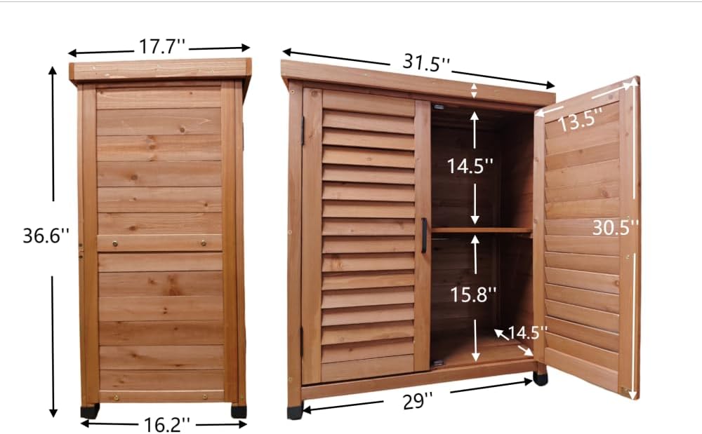 Sturdy Hemlock Development: Crafted from high-quality hemlock wooden, this storage cupboard is constructed to face up to the weather, making it excellent for outside use. Hemlock’s pure resistance to decay and bugs ensures long-lasting sturdiness.
